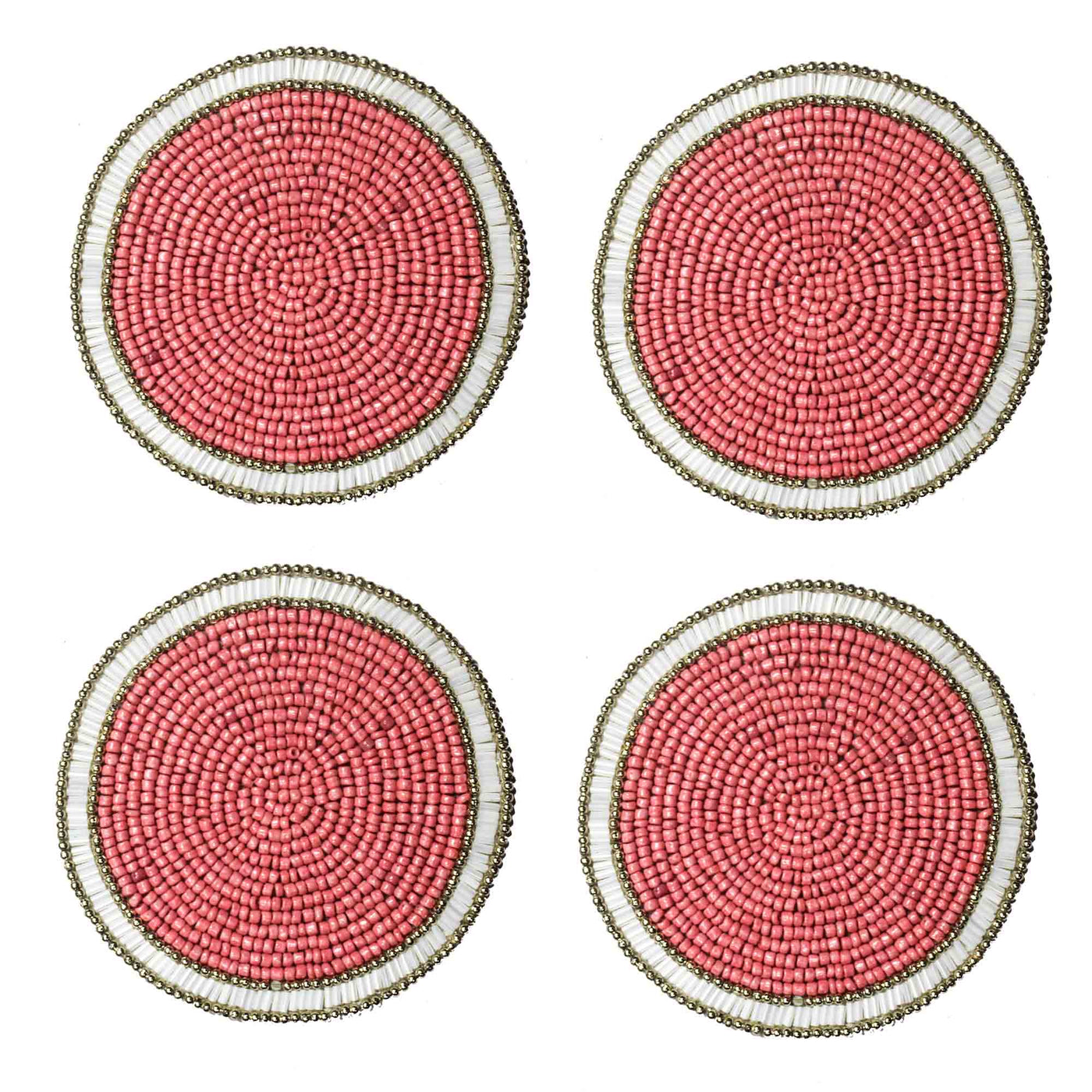 Beaded Embroidered Pink Ivory Coaster Set of Four