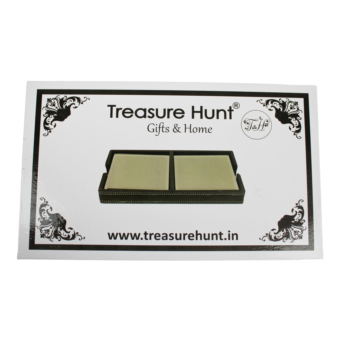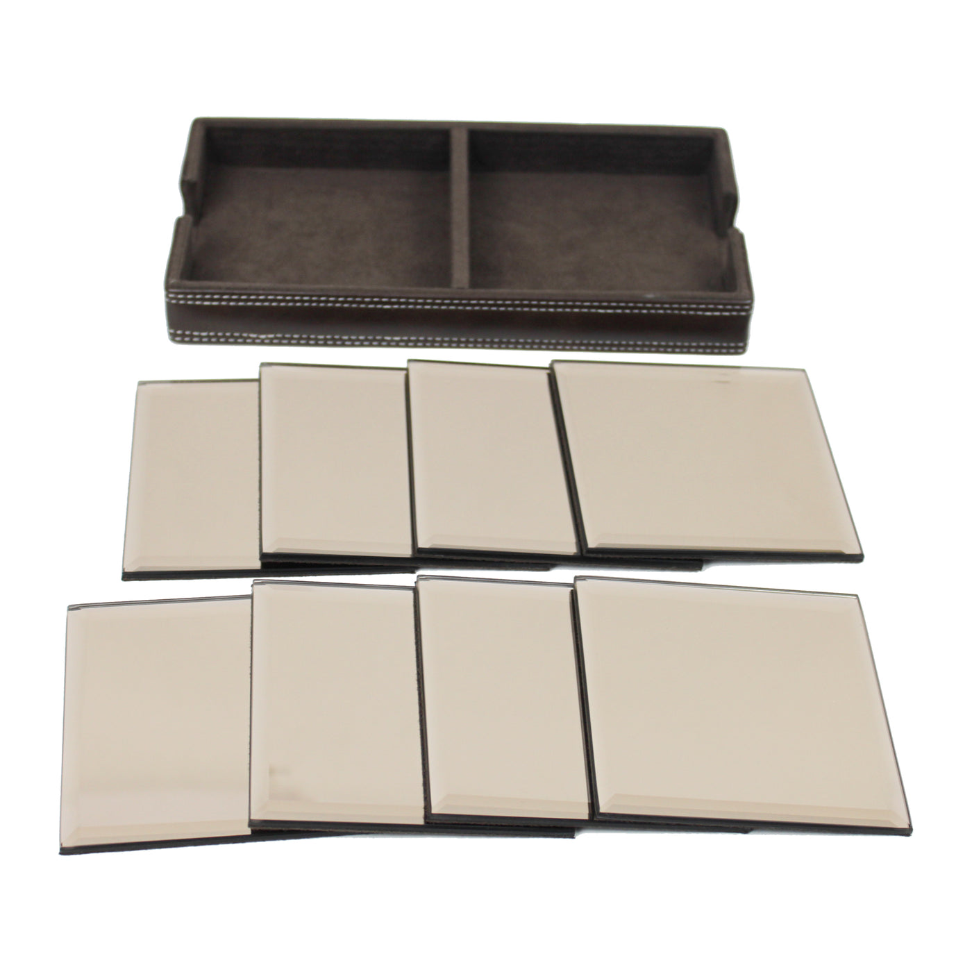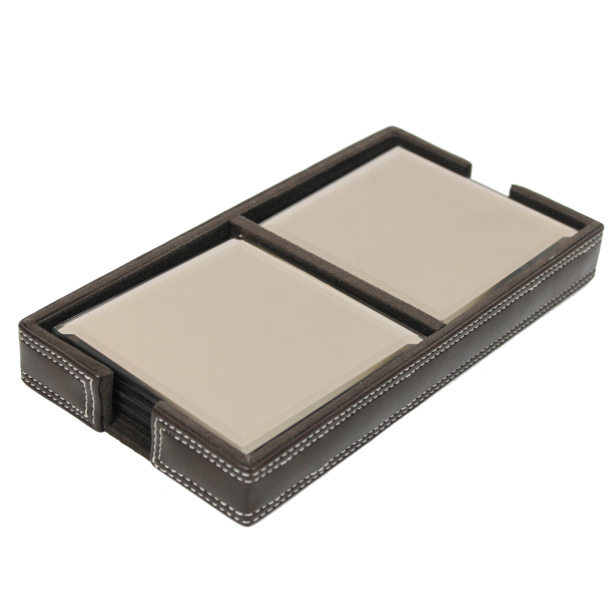 Brown Glass Coasters Set of Eight with Leatherite Caddy Tray