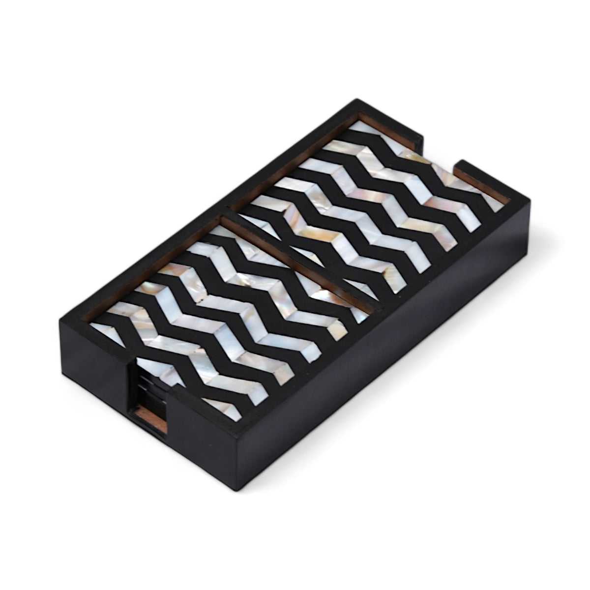 Zig Zag Design MOP/Resin Coaster Set of Eight with Caddy Tray