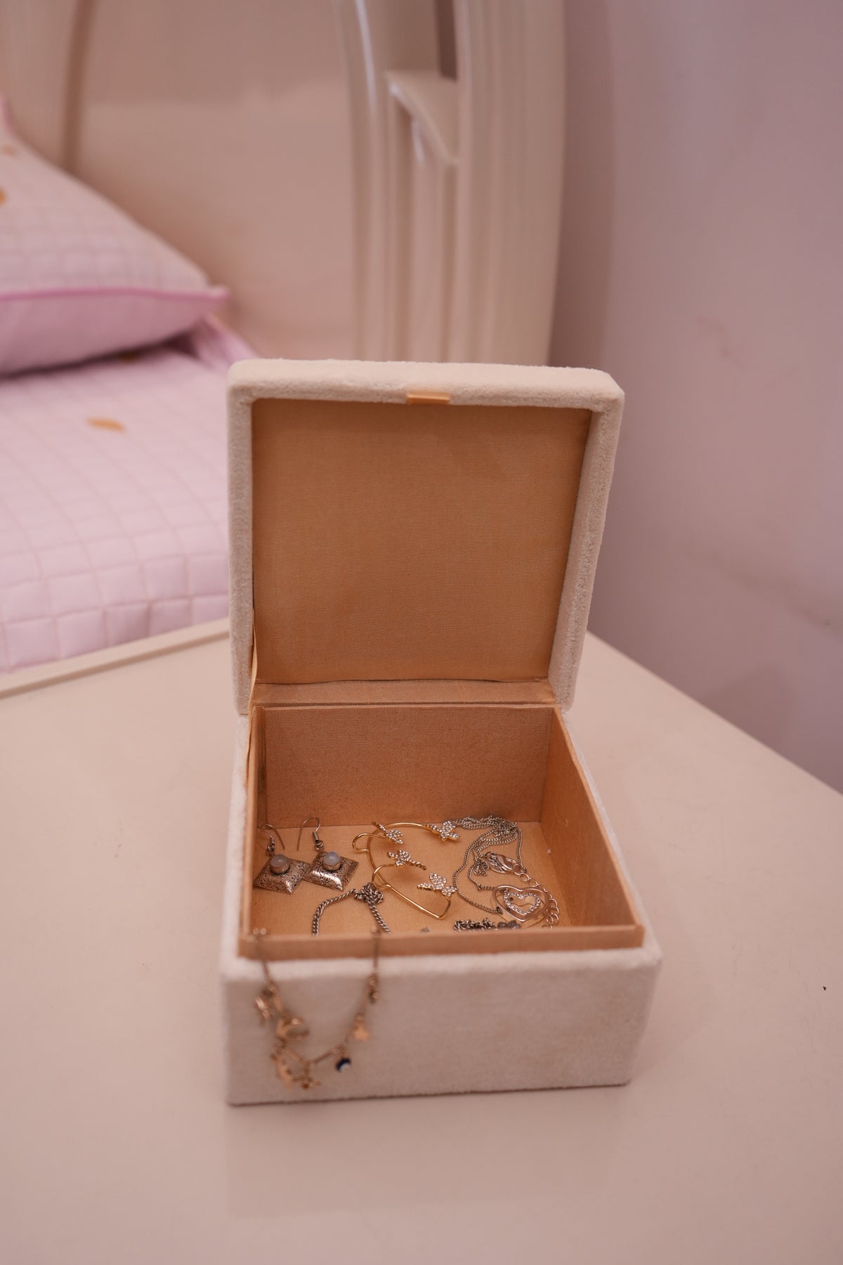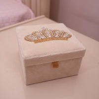 Crown Embroidered Velvet Beige Jewellery Box