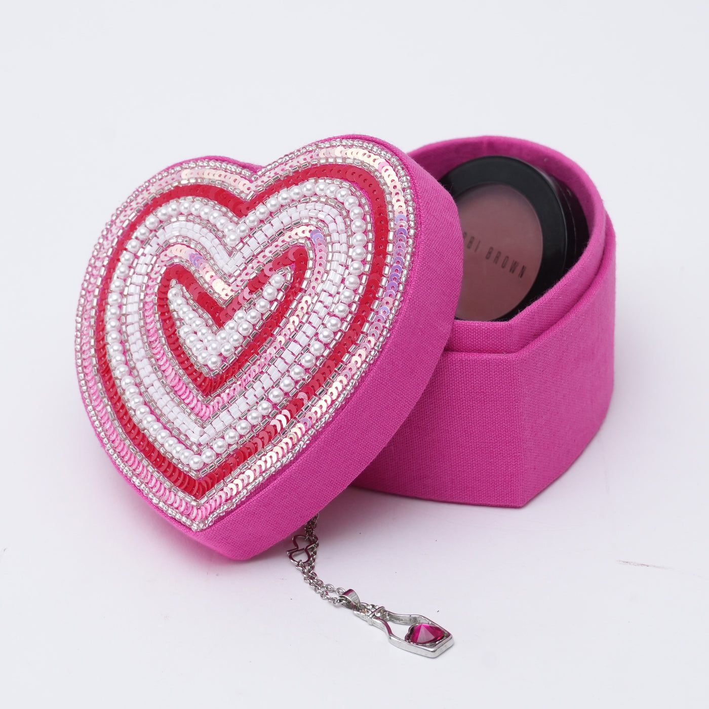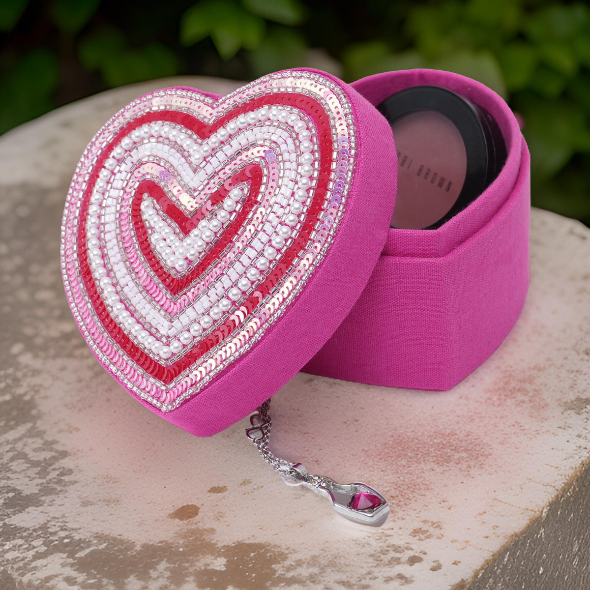 Dark Pink Hand embroidered Silk Heart Box for Valentine's Day