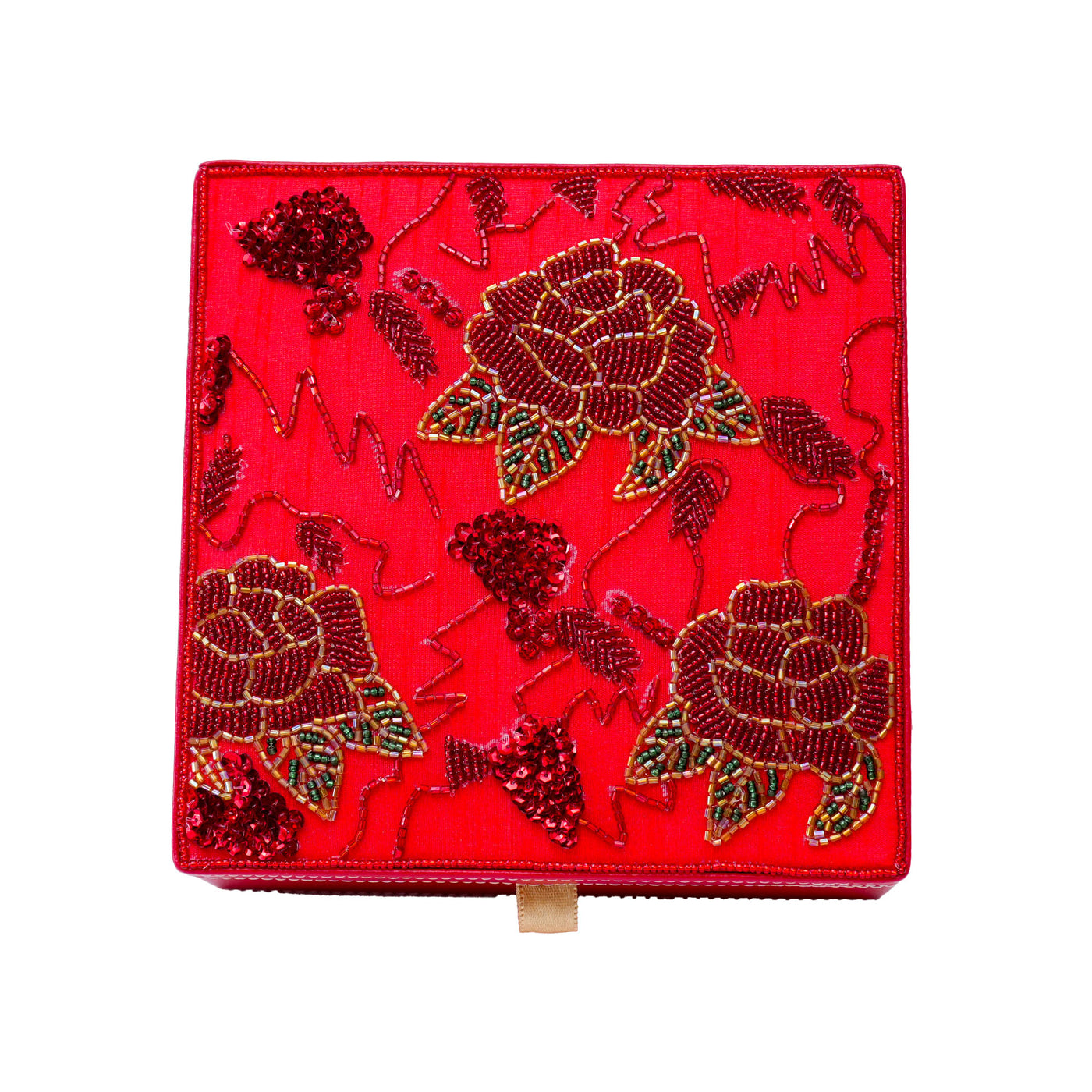 Embroidered Red Rose Design Jewellery Box