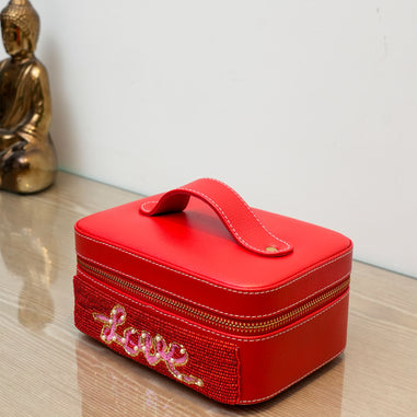Hand Embroidered Red PU, Make up case | It is a good choice for a Valentine gift