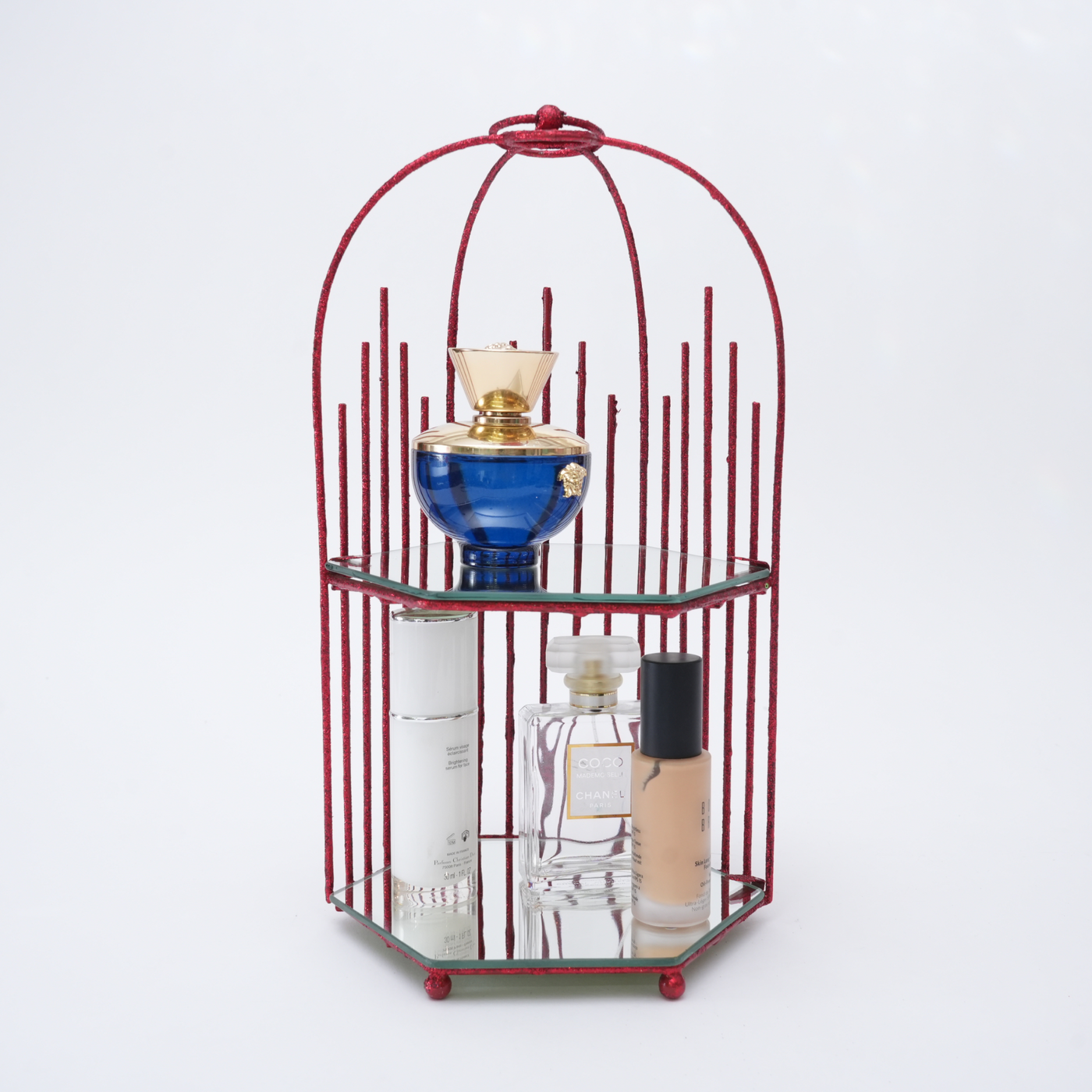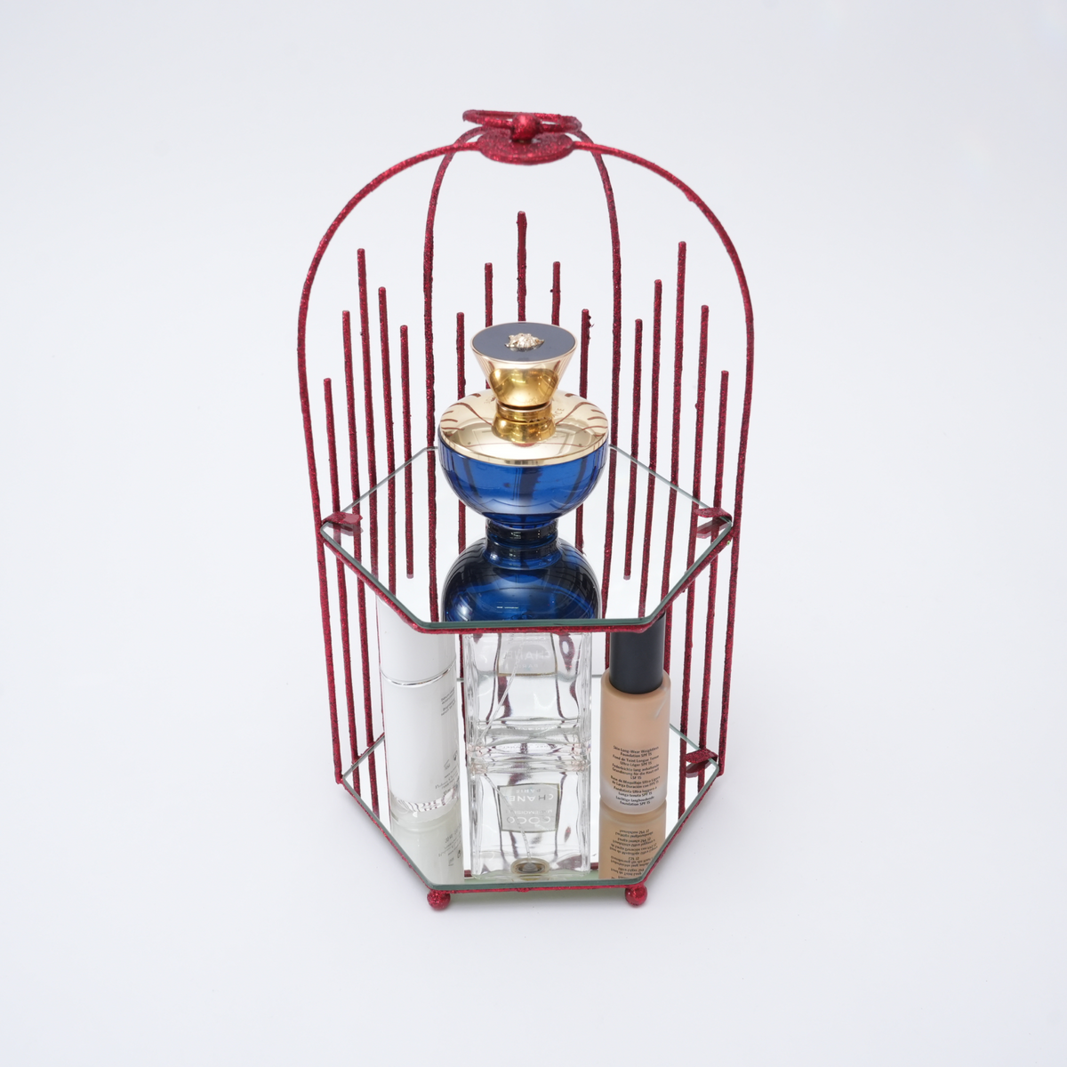 Red Dresser Makeup Organizer (Medium, Cage Shape)