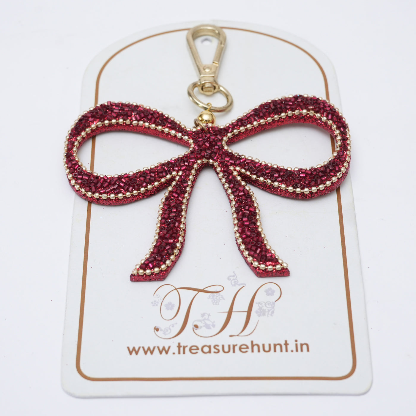 Red Lacquered Bow Bag Charm for Valentine's Day