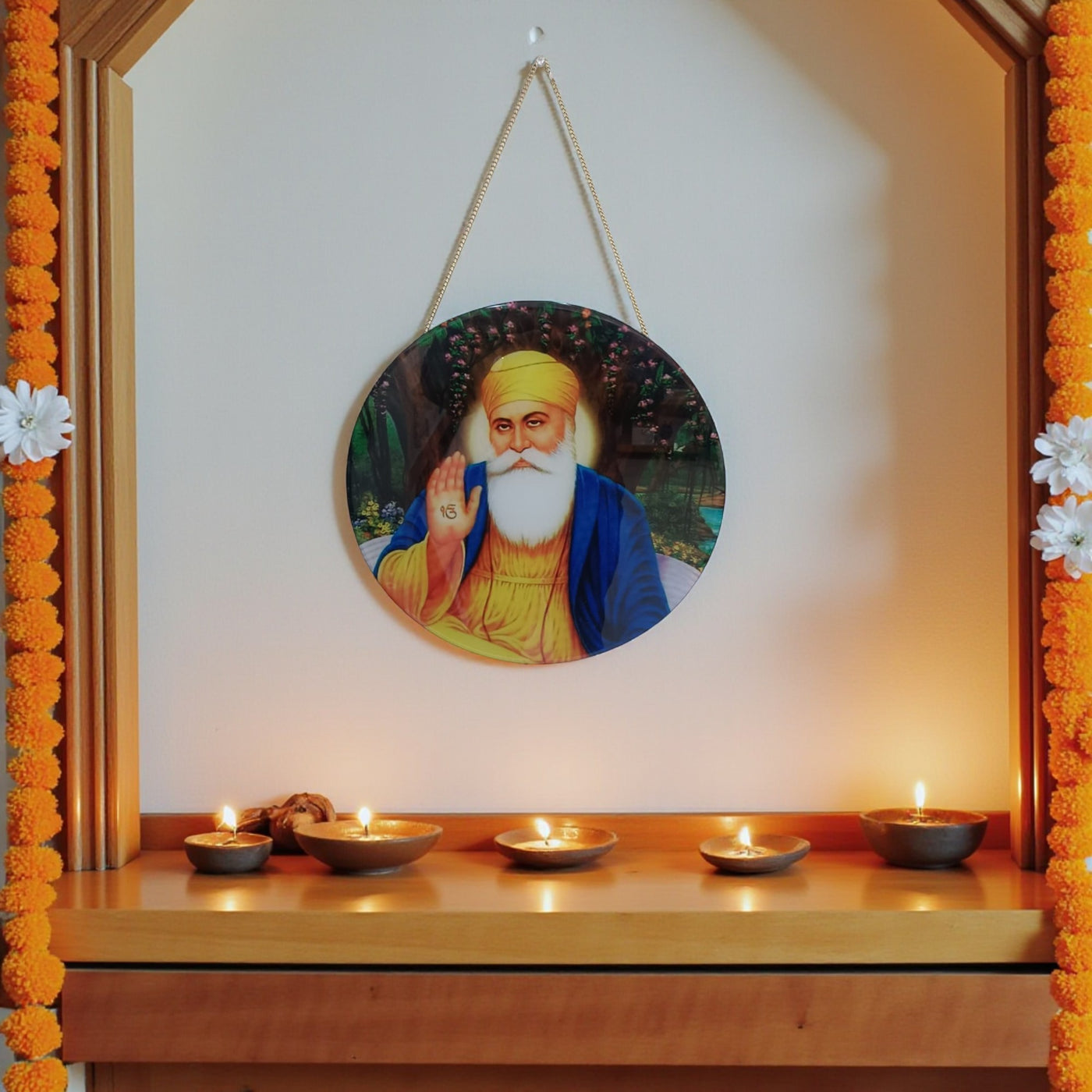 Glass Printed Round Guru Nanak ji Wall Decor