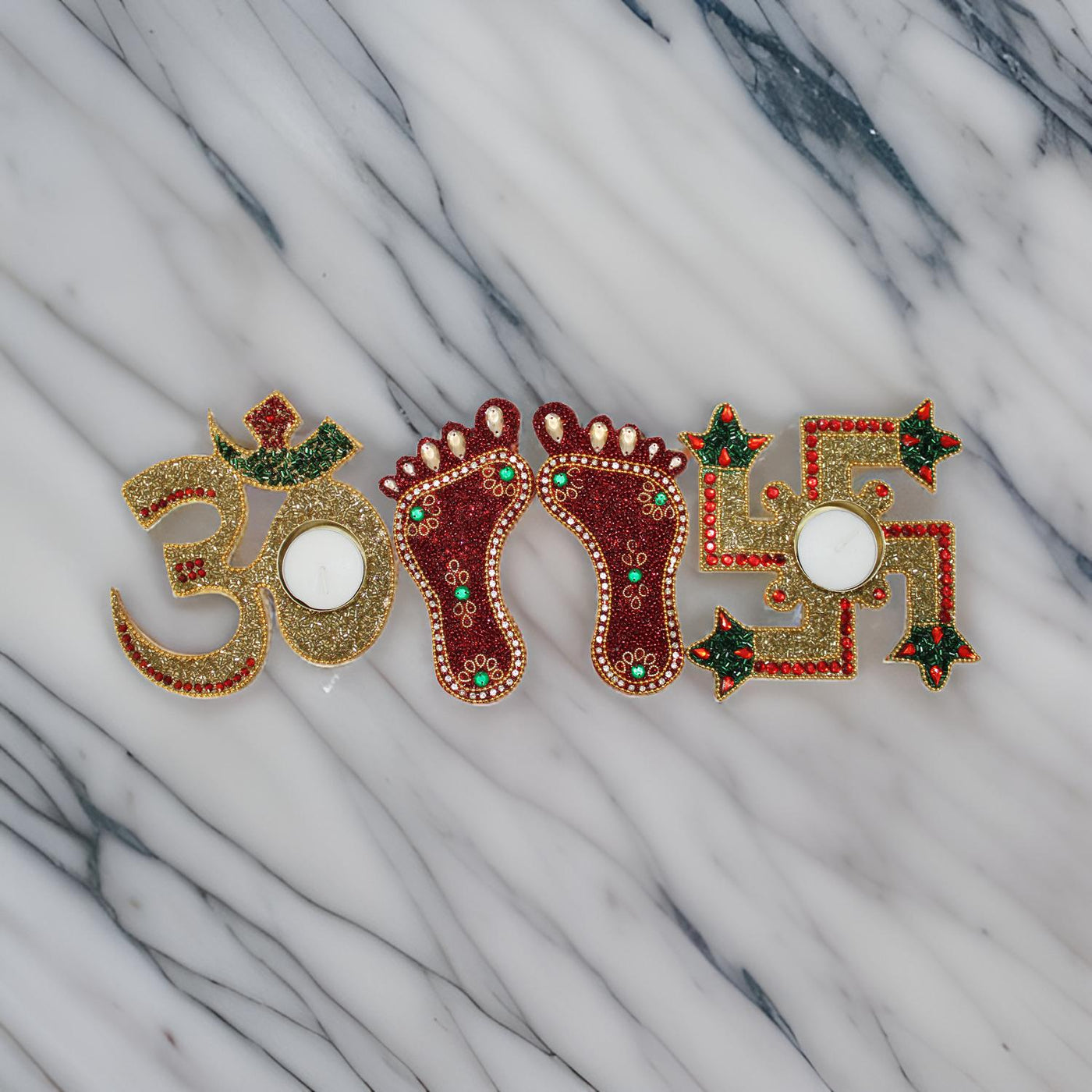Laxmi Ji Charan Paduka with Om Swastik Diya