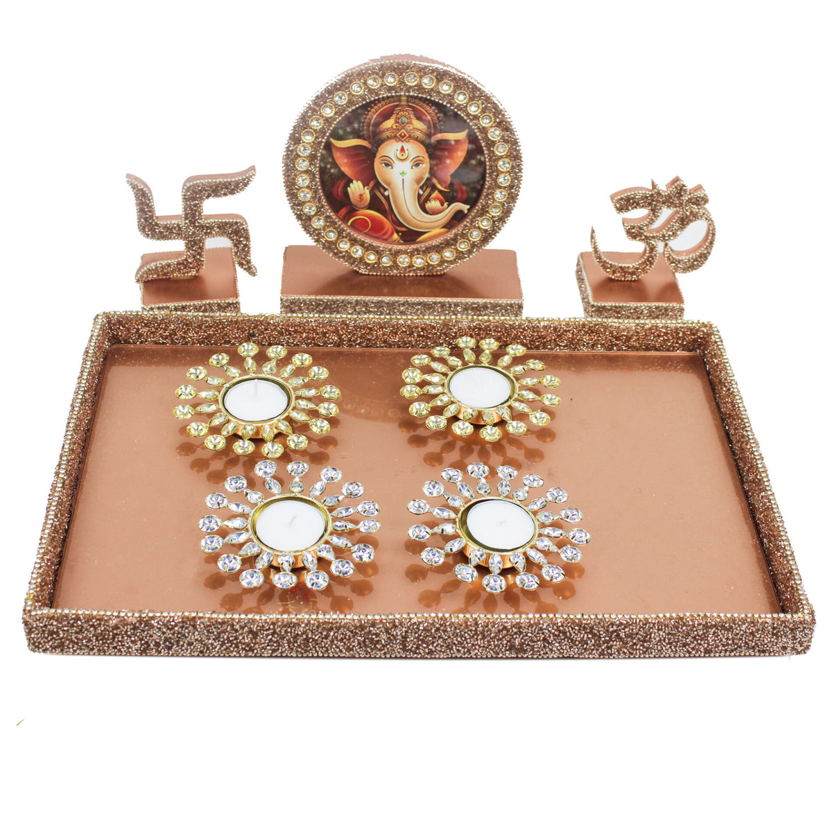 Beautiful Laxmi Ganesh Photo Frame With T-light & Flowers for Diwali Gifts
