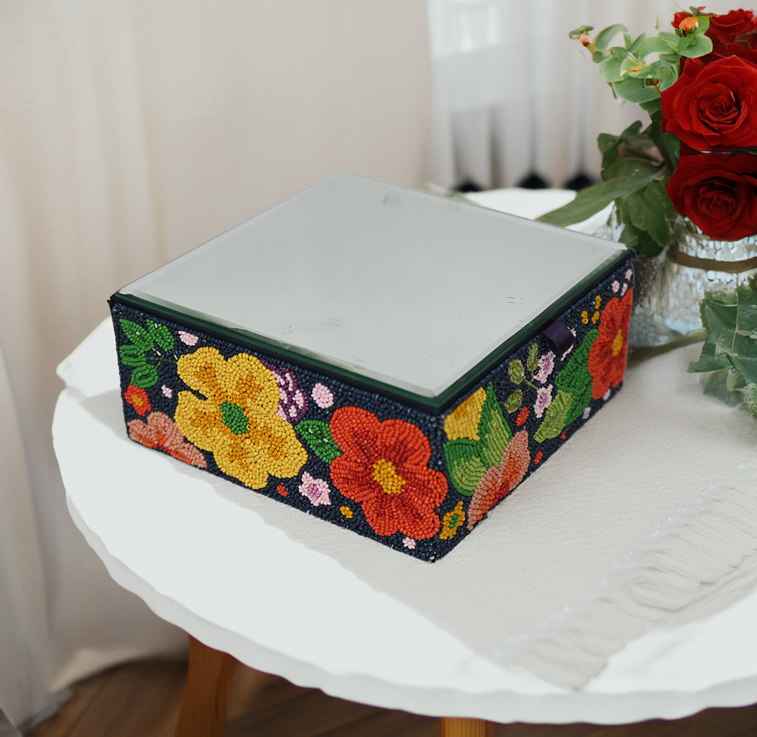 This storage box is made from high-quality glass and beads, offering both durability and a luxurious, premium look that adds elegance to any space.