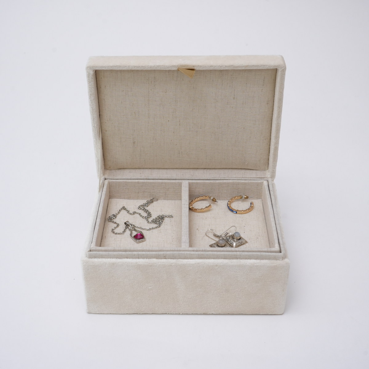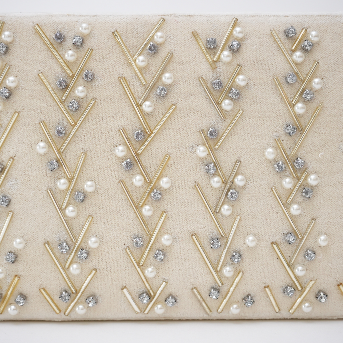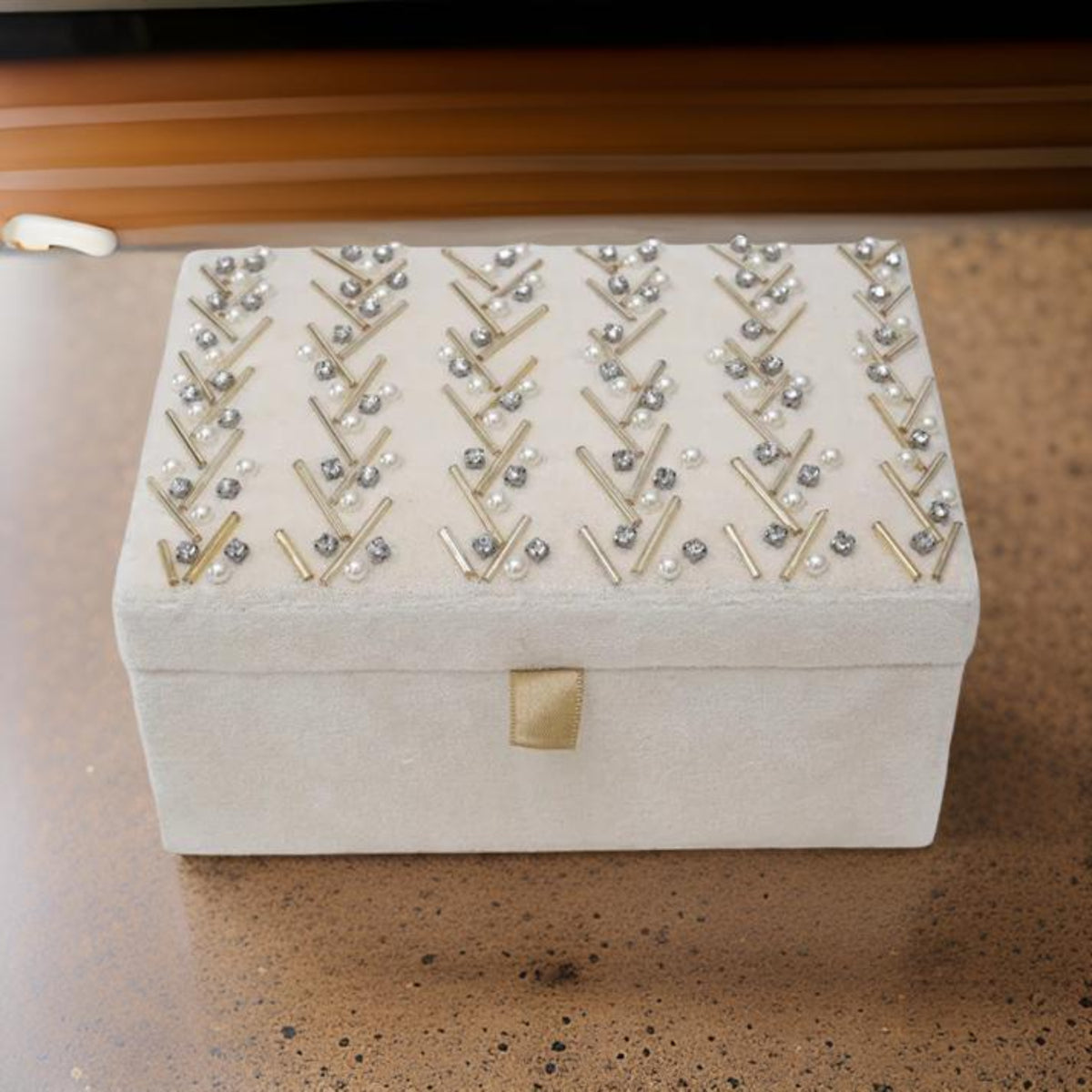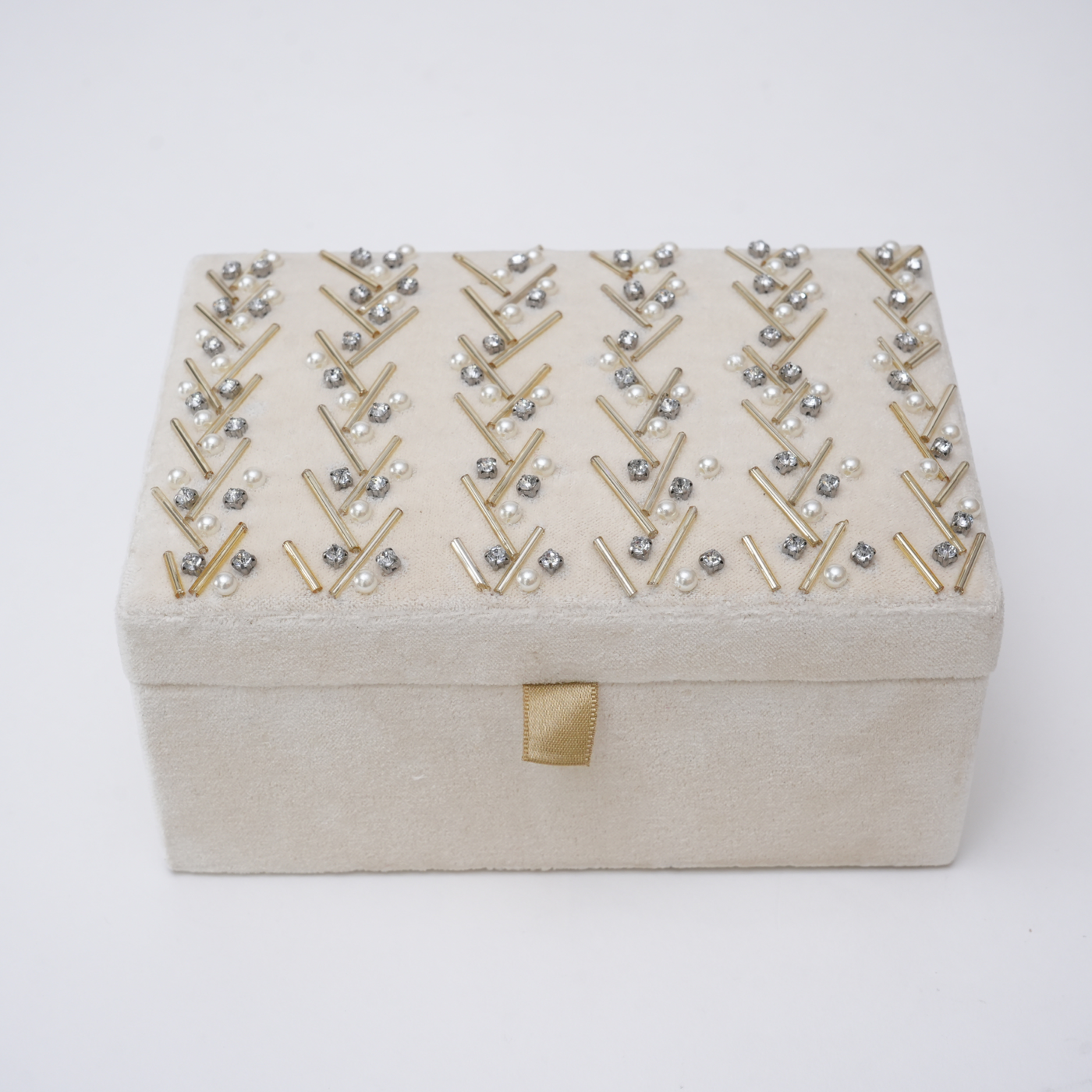 Beaded Ivory Velvet Jewellery Box