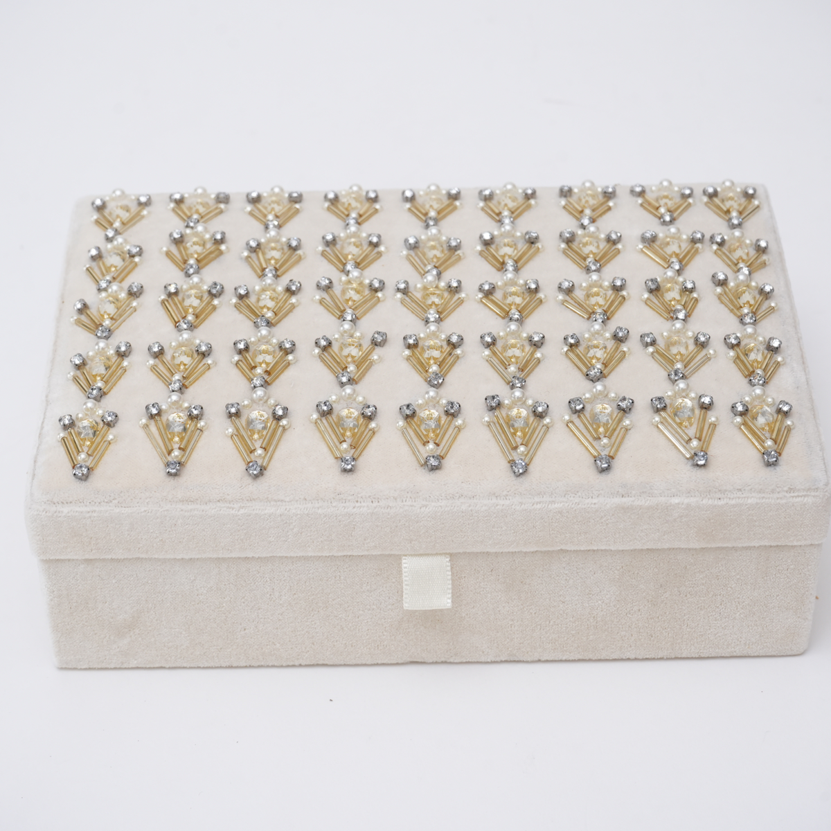 Beaded Ivory Velvet Jewellery Box