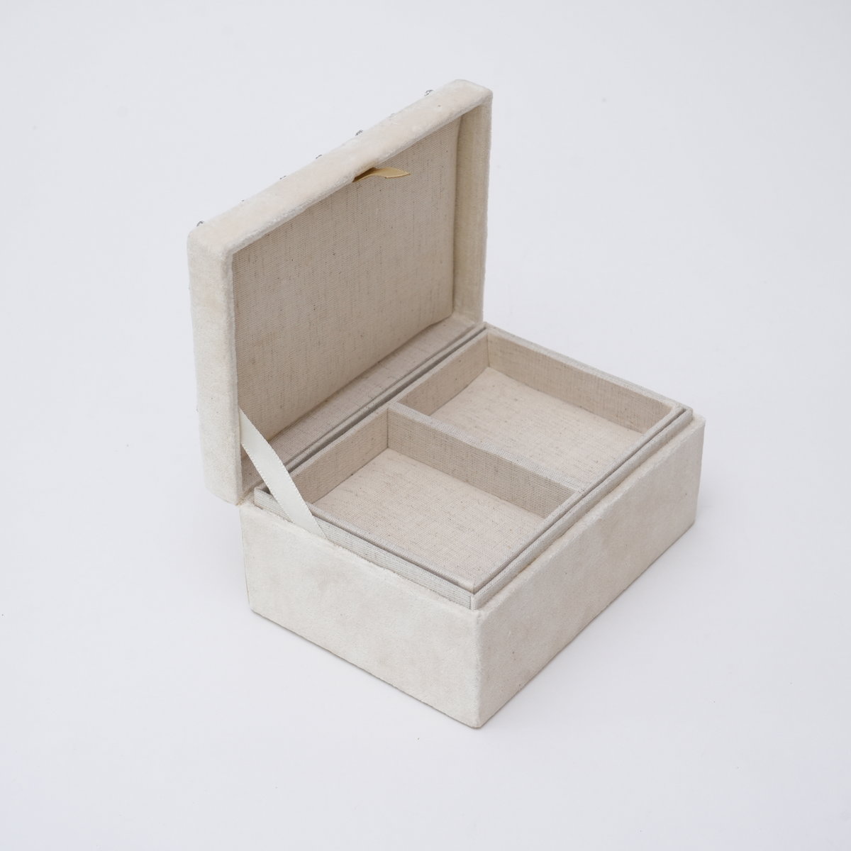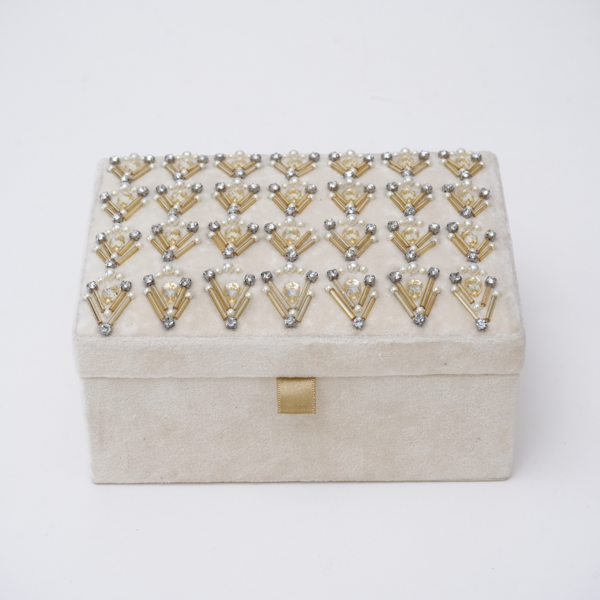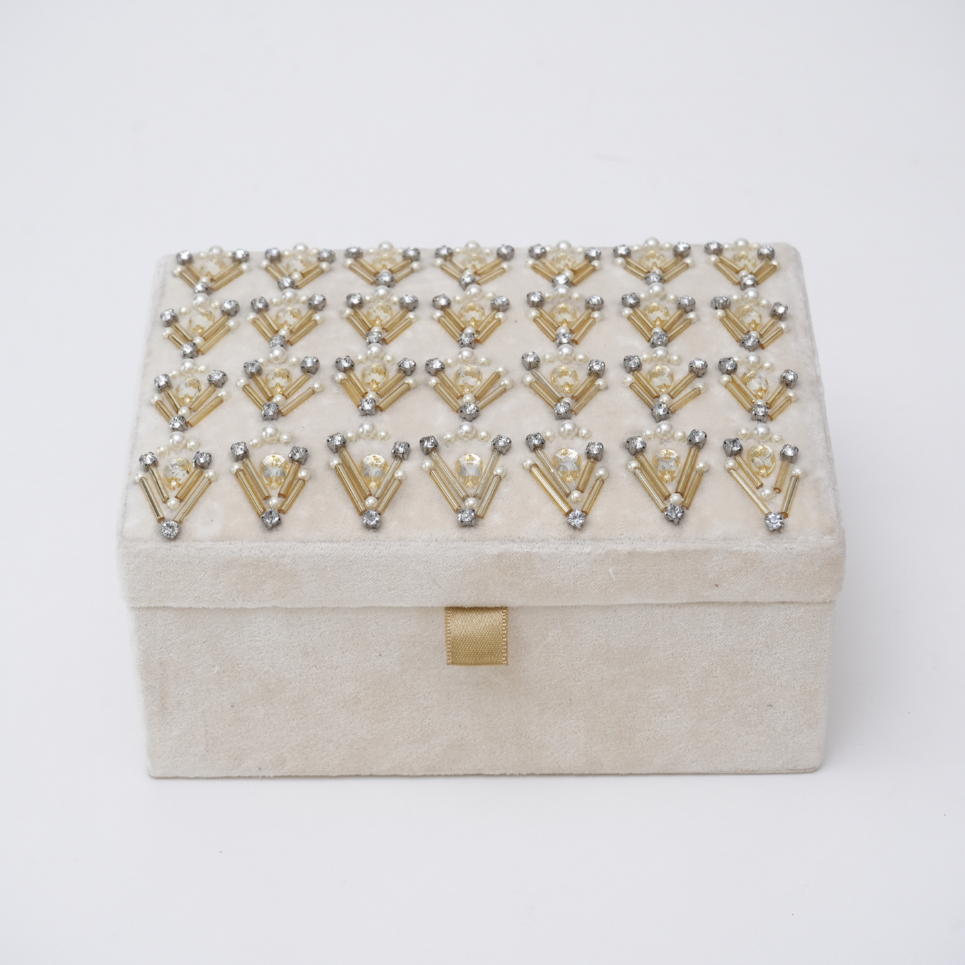 Beaded Ivory Velvet Jewellery Box