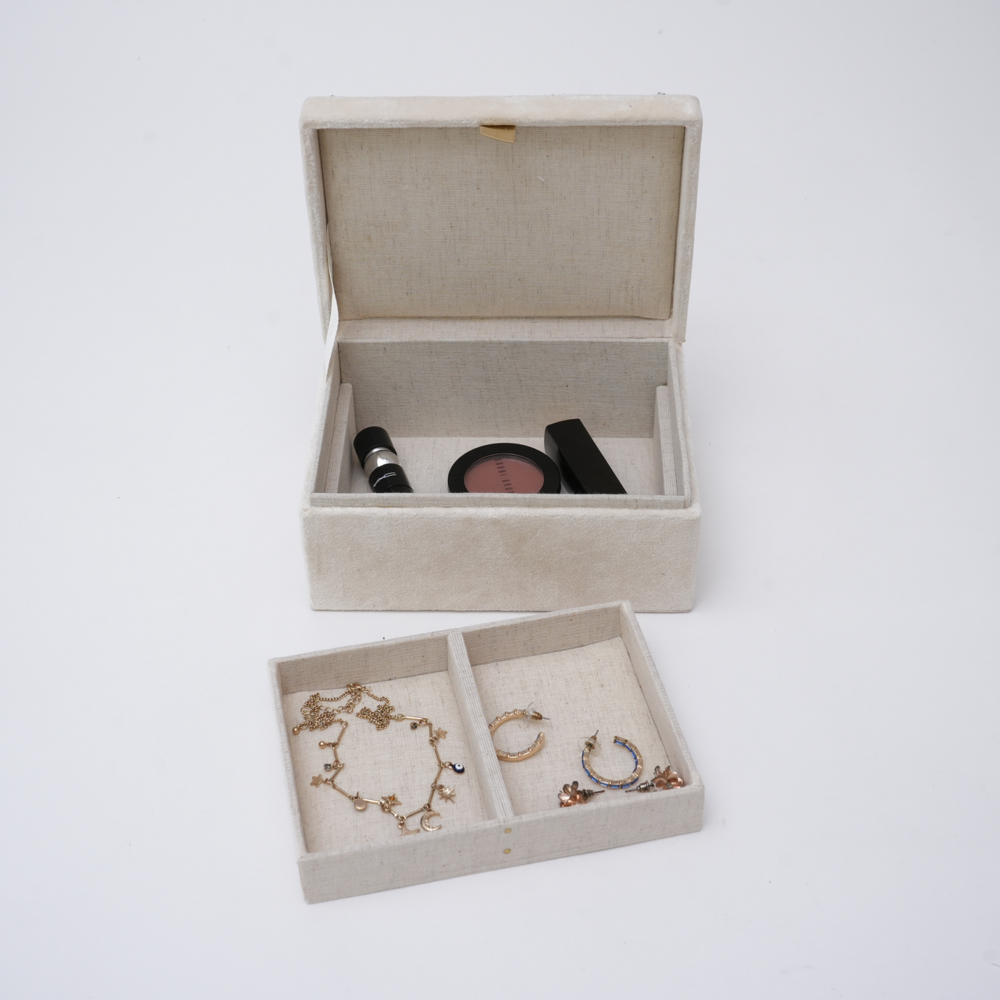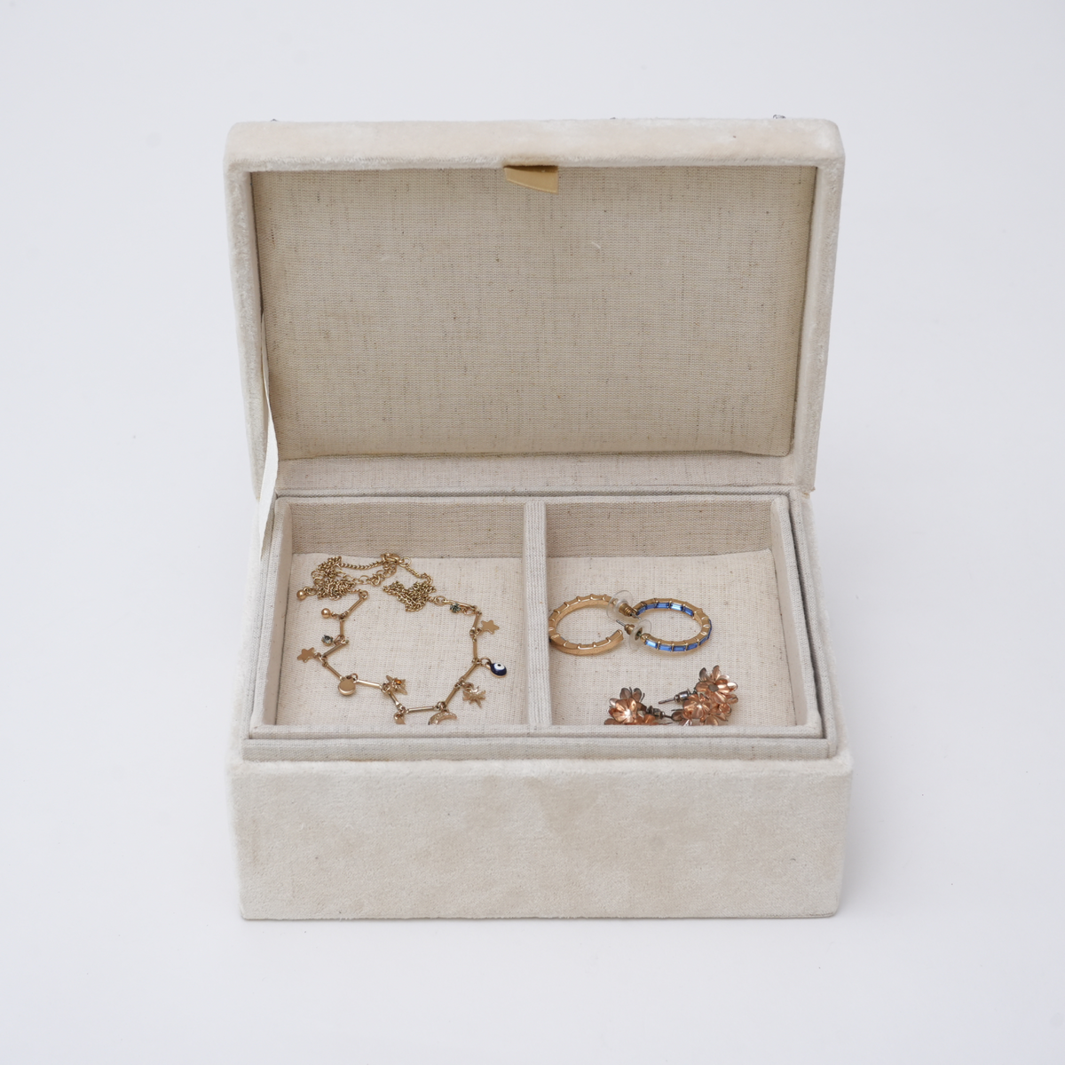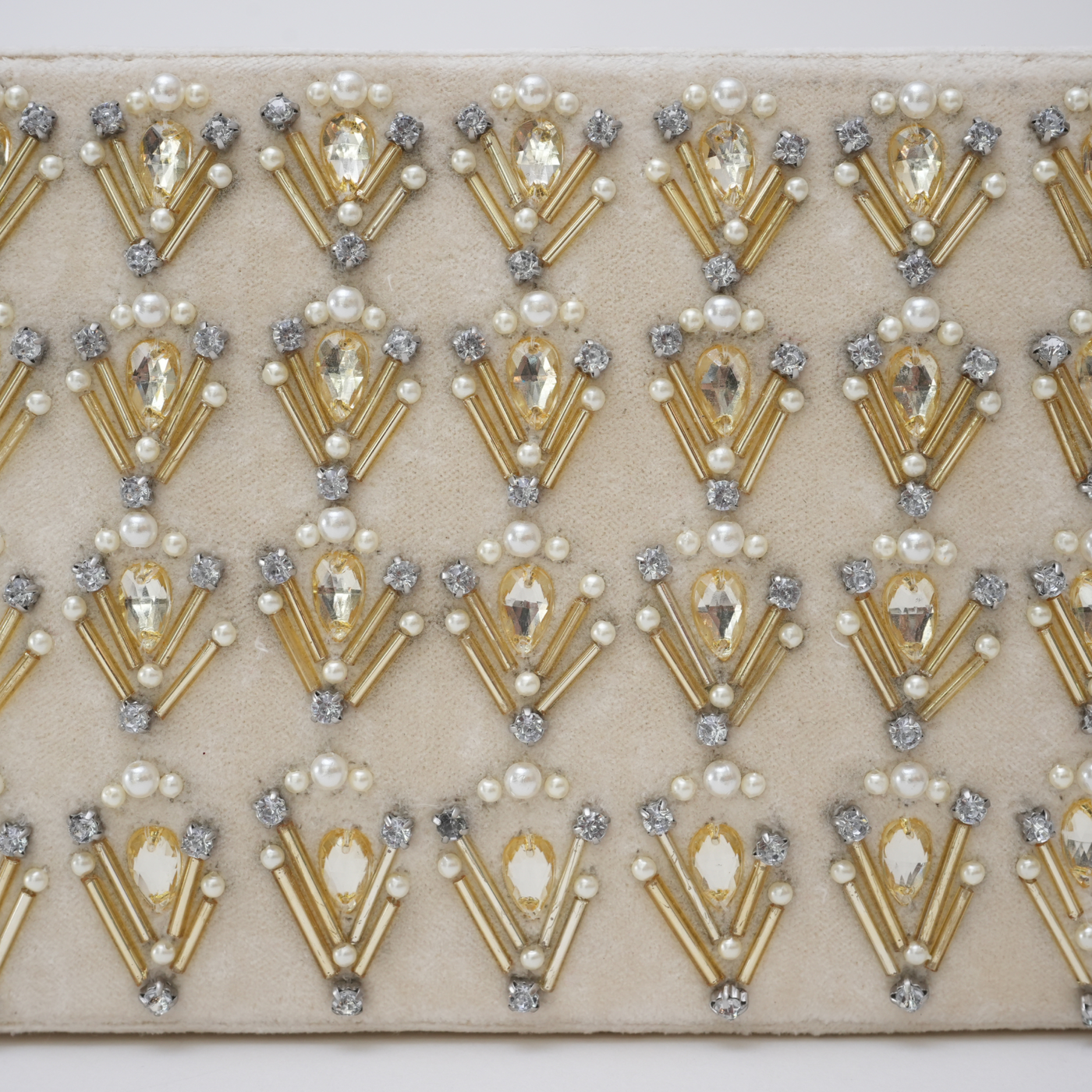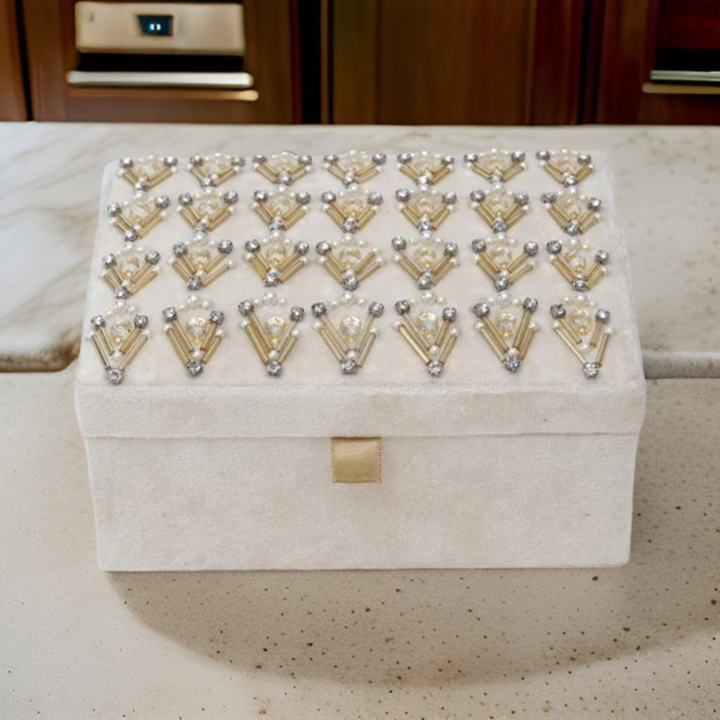 Beaded Ivory Velvet Jewellery Box
