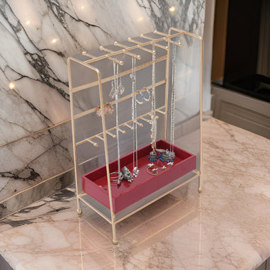 Celebrate love and elegance with this exquisite Jewellery stand, featuring a vibrant red tray as its base. A sophisticated way to organize and display rings, bracelets, necklaces, and earrings.