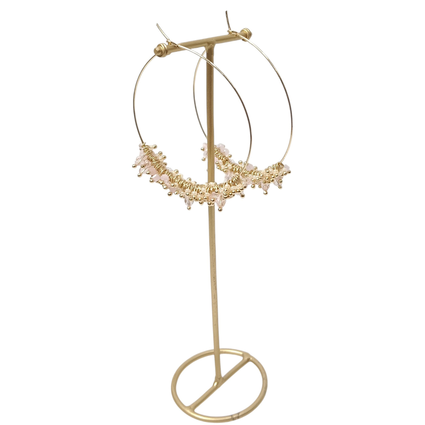 These delicate earrings feature tiny pink beads with a soft, romantic touch complements both everyday outfits and special occasions. The slim gold hoops give a elegant hand-beaded detailing adds a beautiful, charming touch that makes each pair feel special.