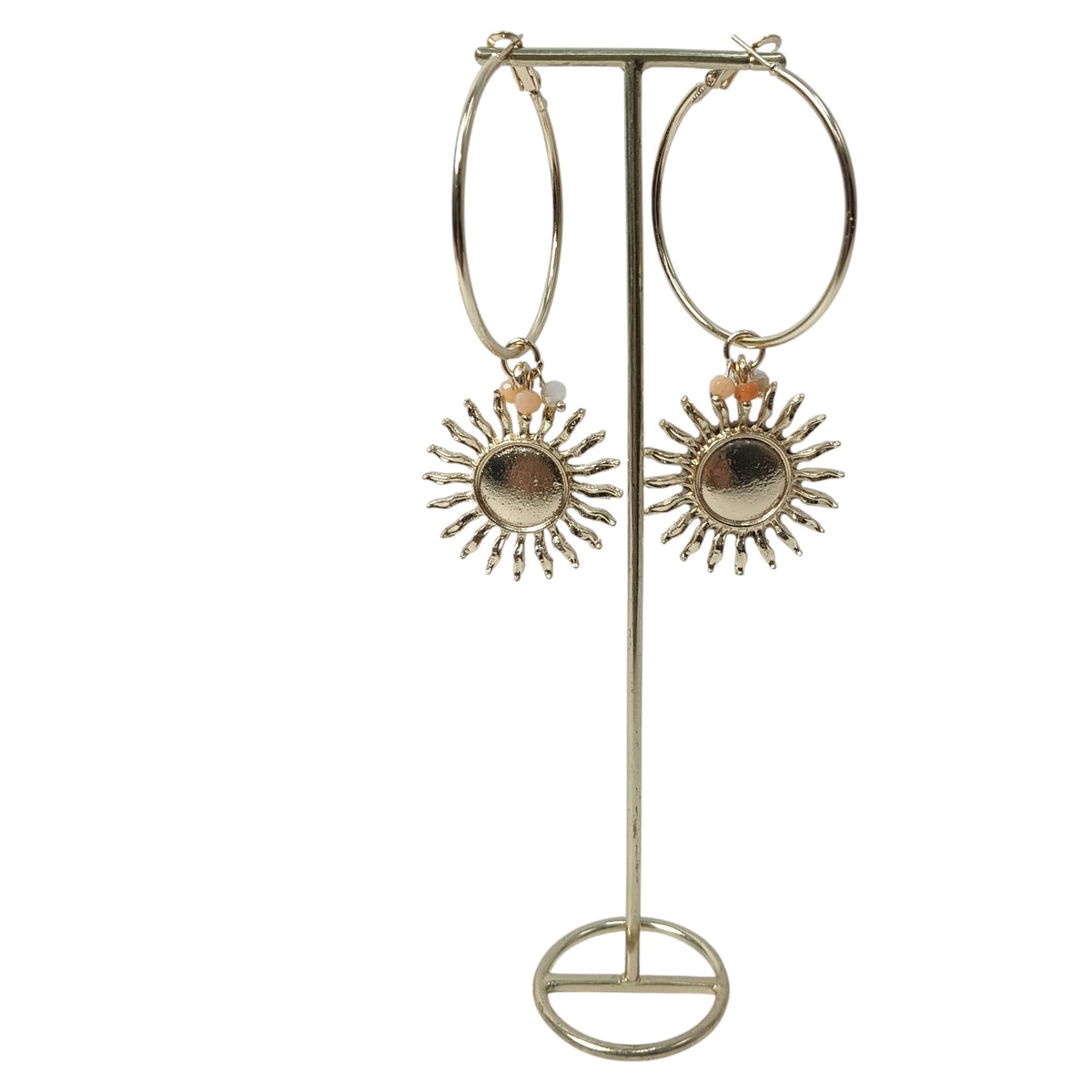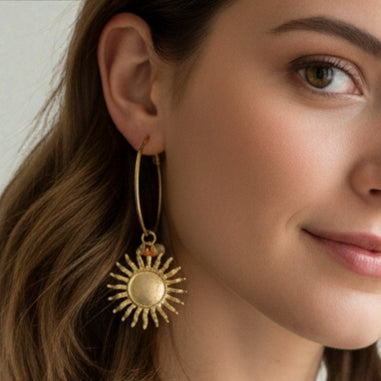 Sun Hoop Statement Earrings with Semi Precious Stones