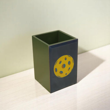 Premium Glass Pen Holder with Pickle Ball Design