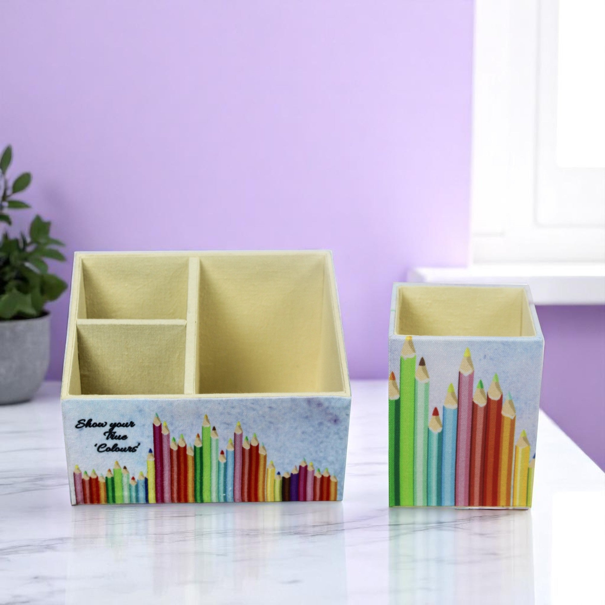 Rainbow Design Stationary Organizer & Pen Holder (Set of 2)