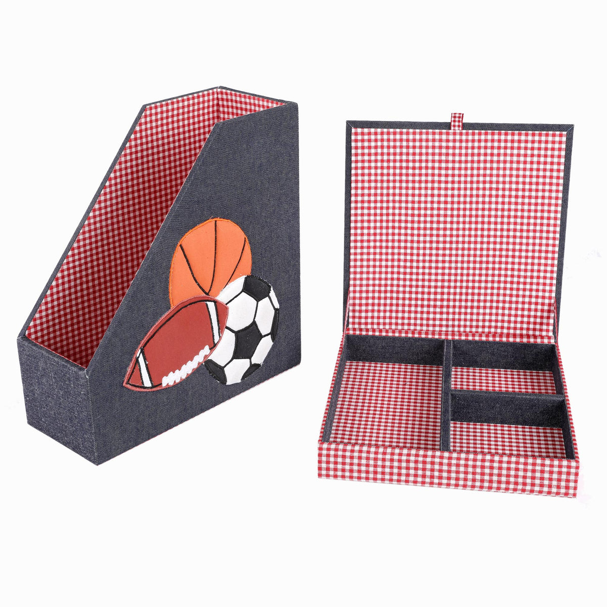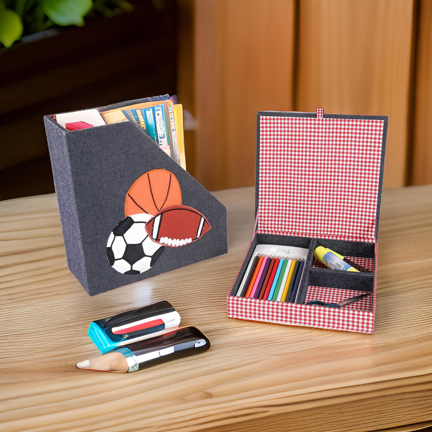 Sports Balls Design Magazine Holder & Stationery Organizer (Set of 2)