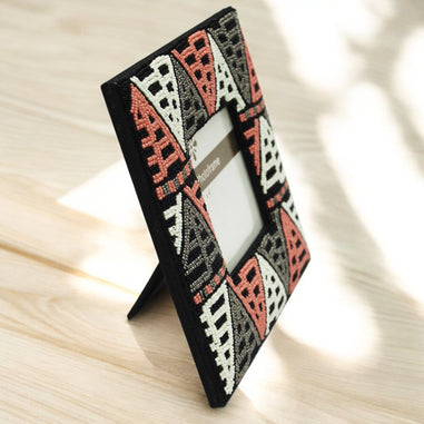 Handcrafted Photo Frame, made of Multicolor Beaded Triangle Design looks beautiful when placed at home, office and living room.