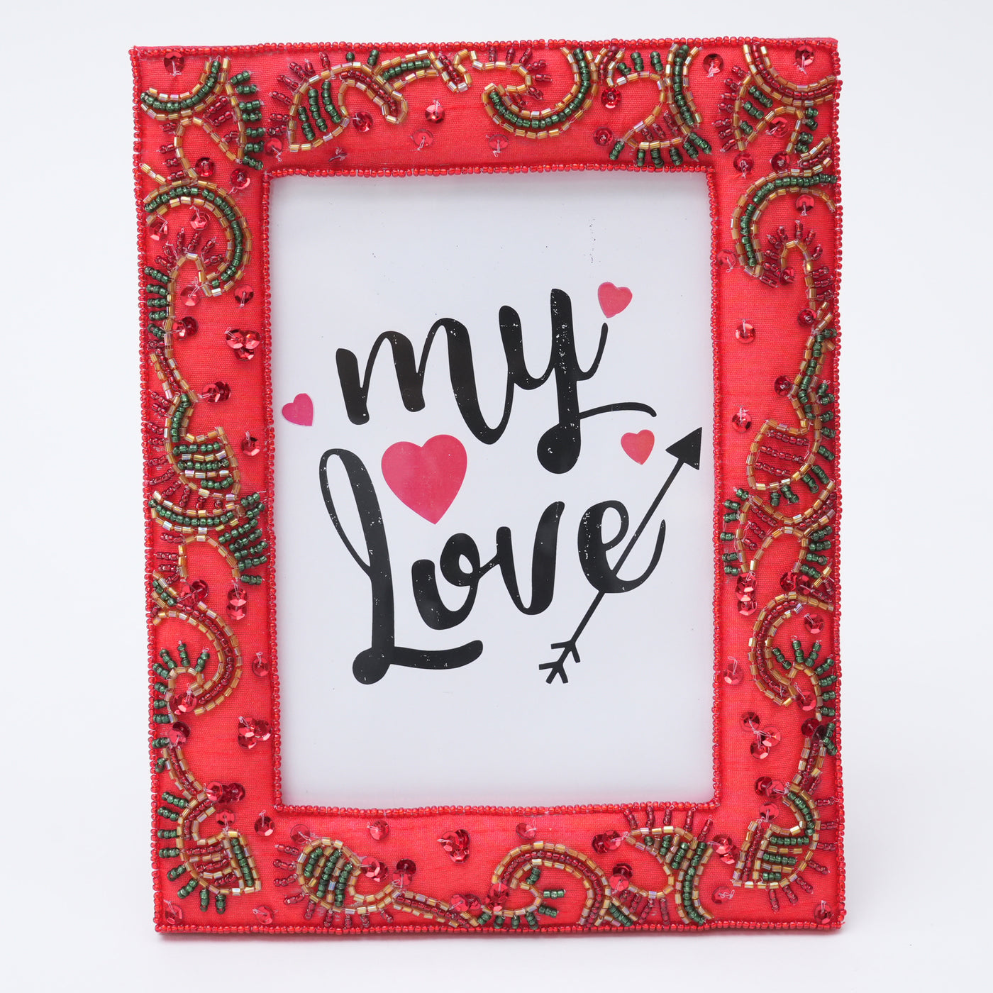 Beautifully Hand Embroidered Red Picture Frame for Valentine's Day