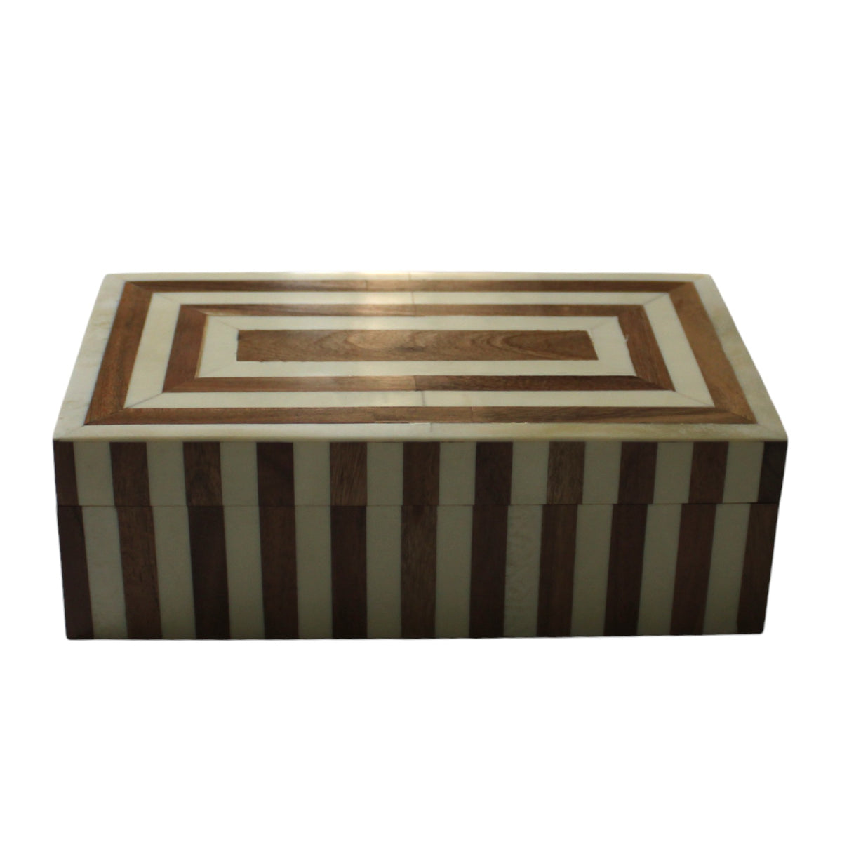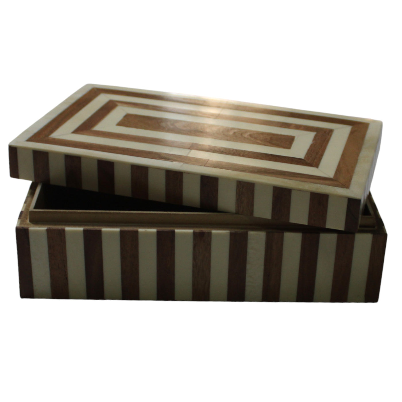 Handcrafted Wood and Bone Inlay Striped Decorative Box