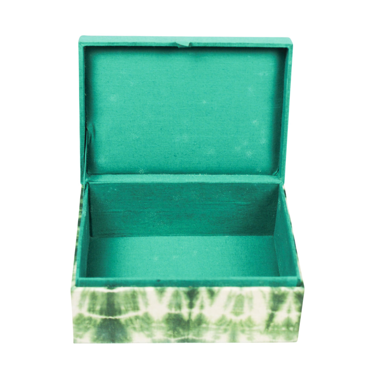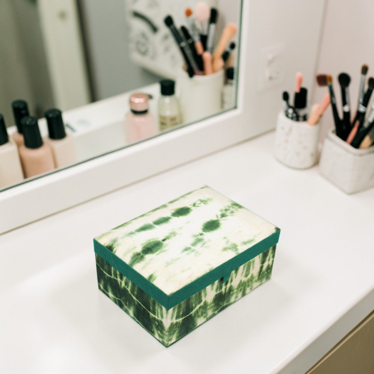 Artisanal Textile: Features a hand-dyed aesthetic with a unique emerald green and white tie-dye pattern.