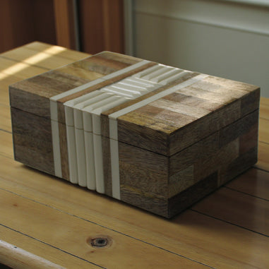 Modern Architectural Wood & Bone Inlay Box