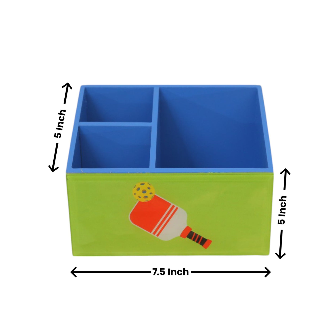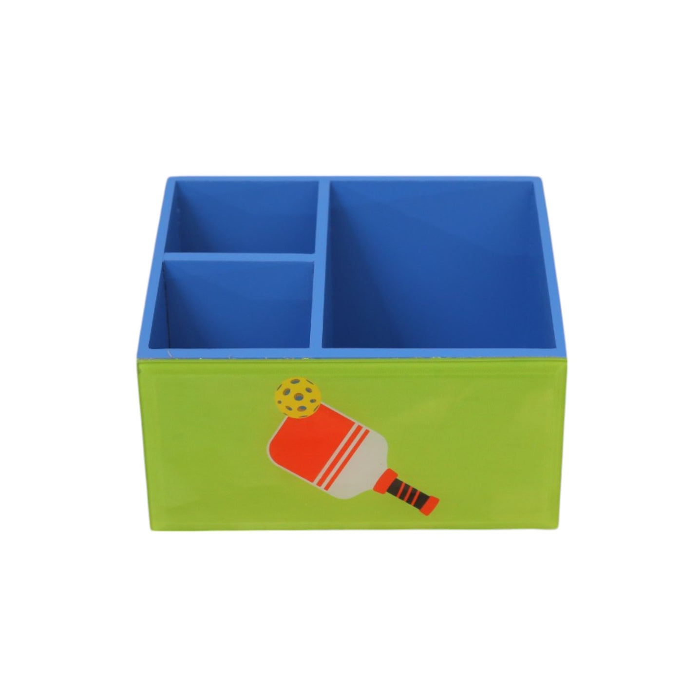 Premium Green Glass Stationery Desk Organizer with Pickle Ball Design