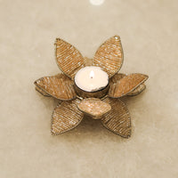 Glamorous Metal Beaded T-Light Stand for Elegant Home Decor