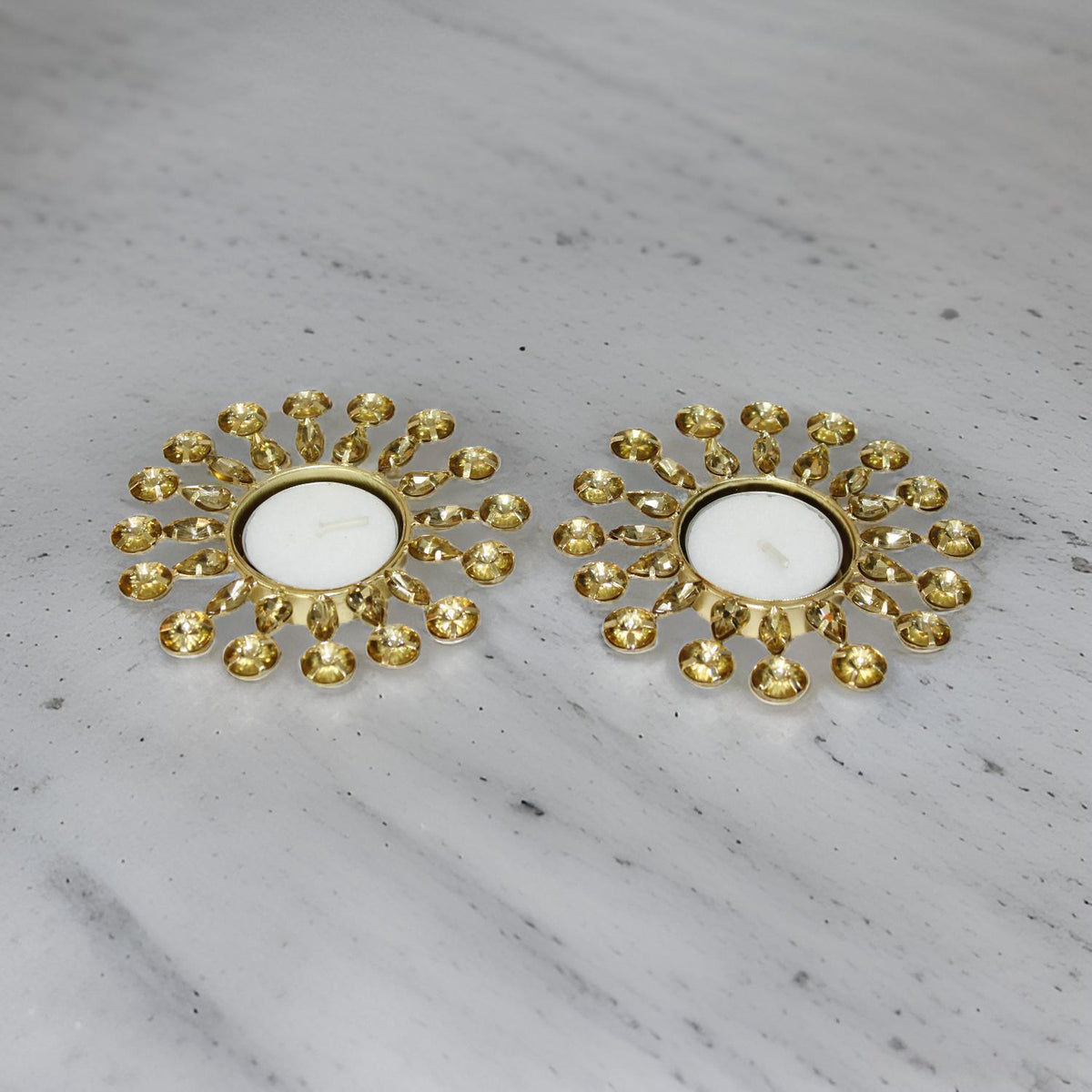 Unique Golden Jewelled T-Light Holder For Diwali Pooja & Decoration(Set of 2)