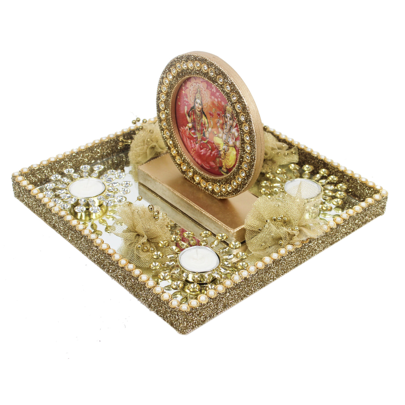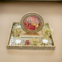 Beautiful Laxmi Ganesh Photo Frame With T-light & Flowers for Diwali Gifts