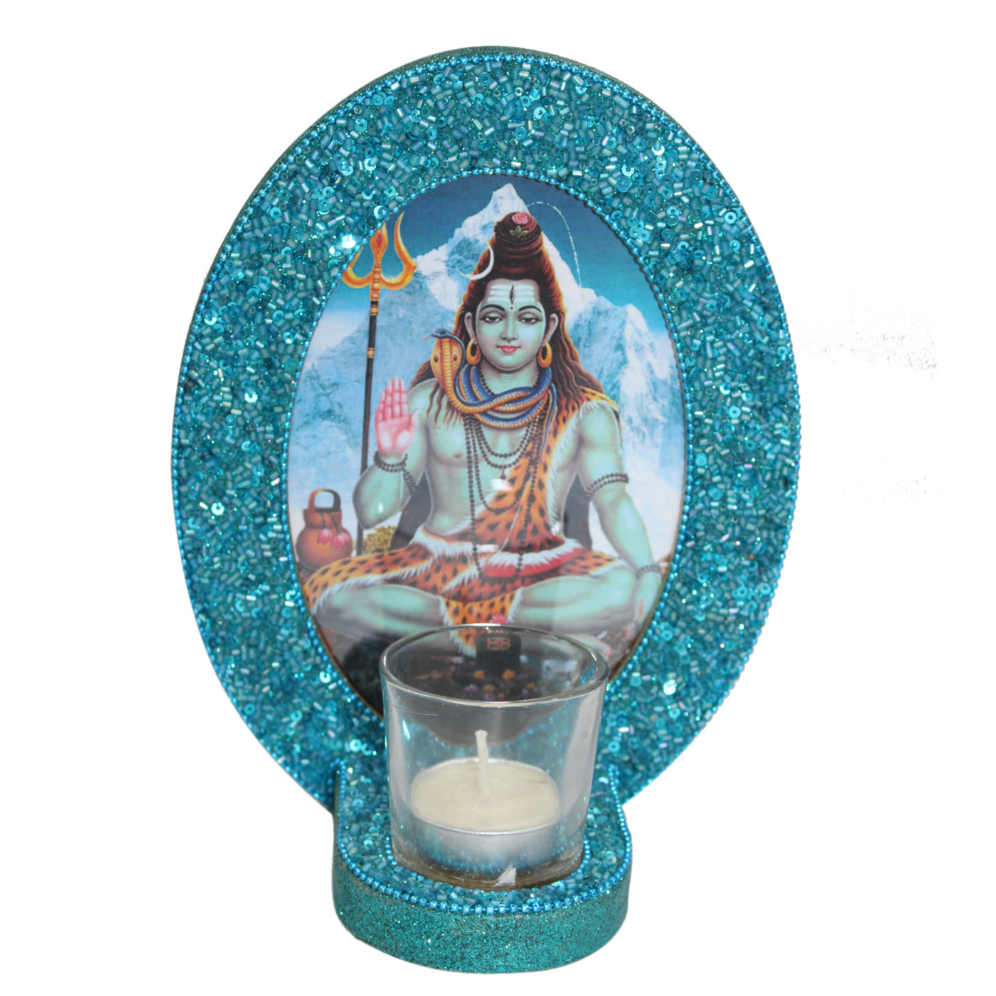 Decorative Lord Shiva Blessings Turquoise Color Photo Frame (5x7 Inches)-TH-251
