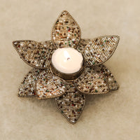 Refined Metal Beaded T-Light Stand for a Luxurious Glow