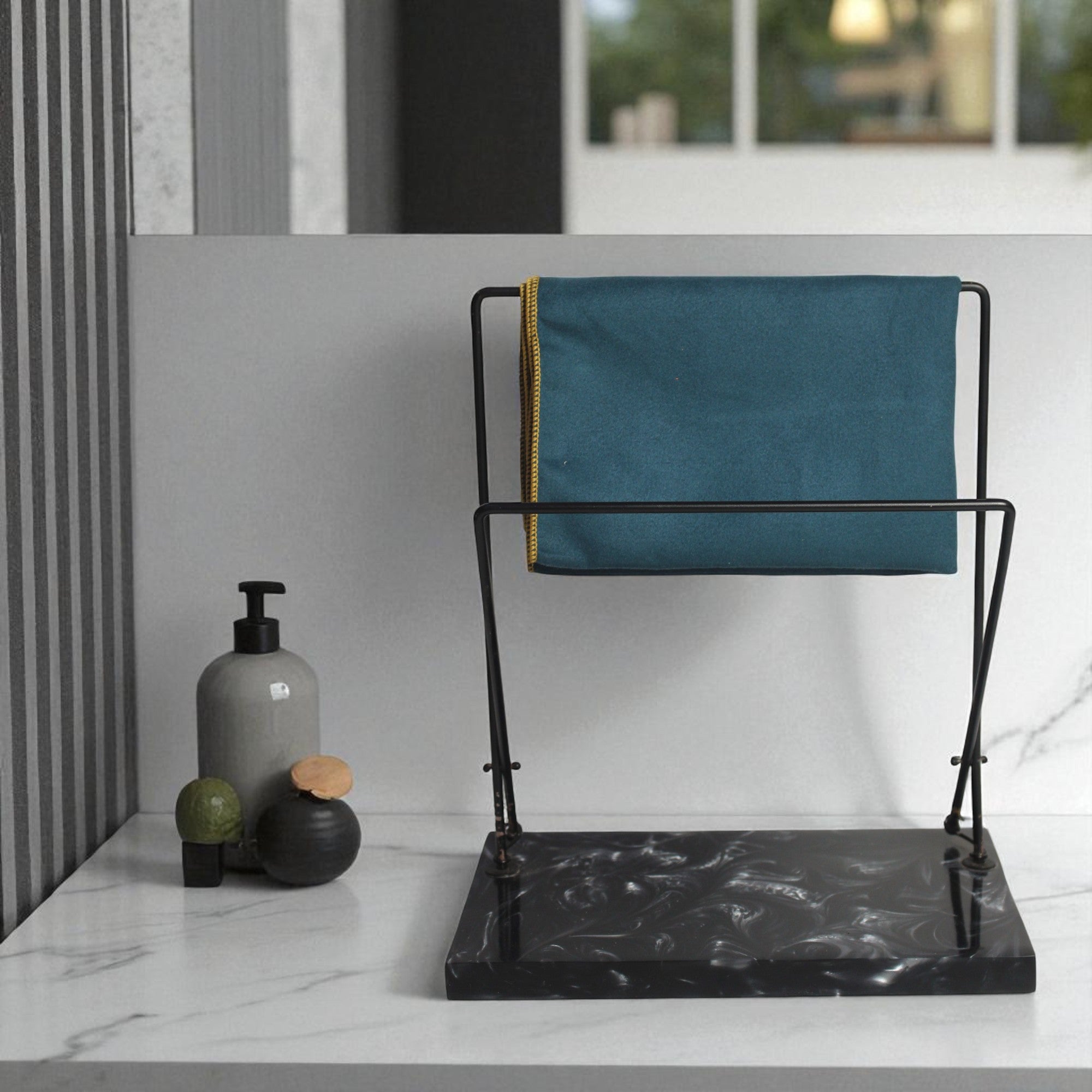 Dual Adjustable Metal Powder Coated Towel Stand with Black Resin Base