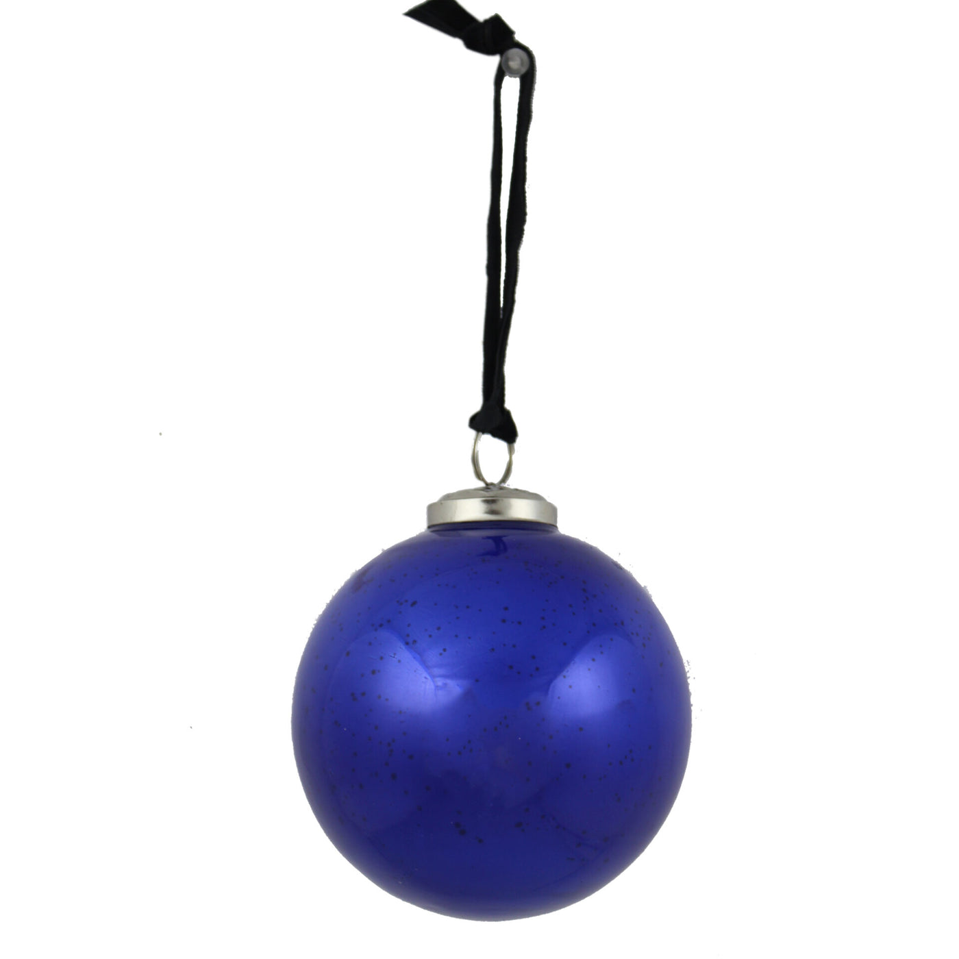 Set of 4 Blue Glass Christmas Tree Decorative Balls