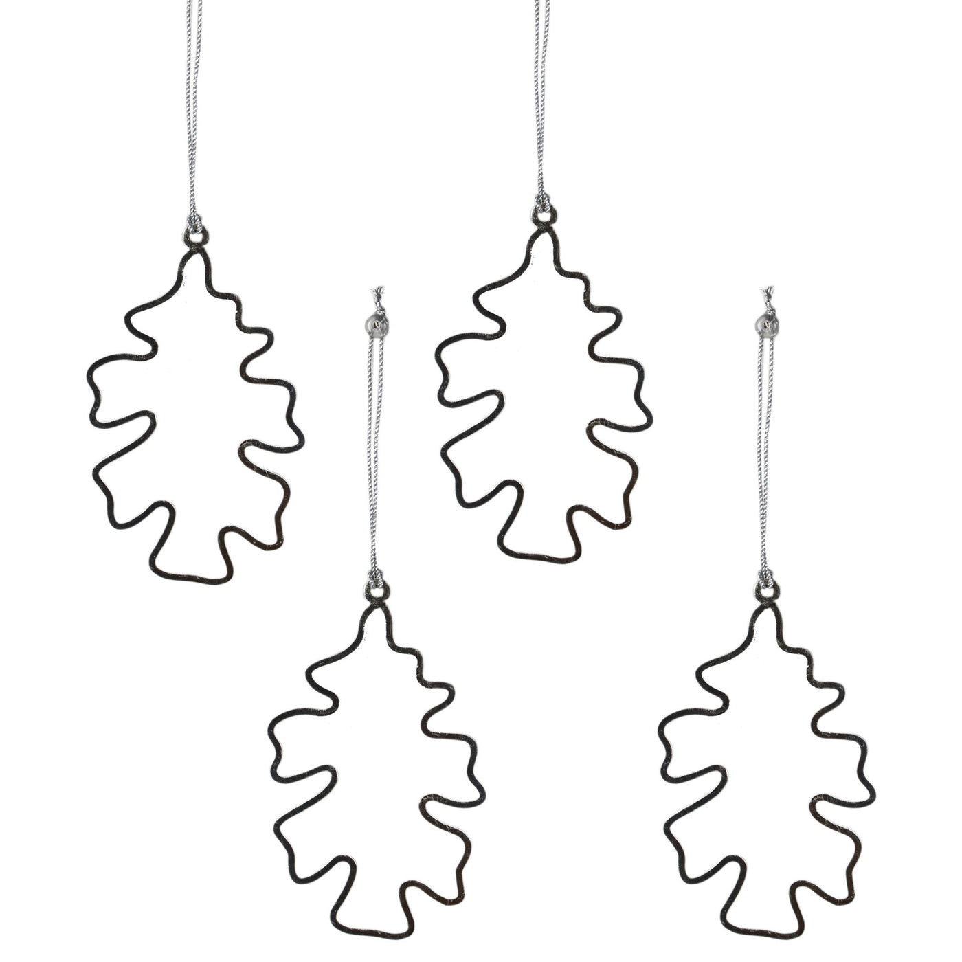 Set of 4 Metal Tree Shaped Hanging Ornaments for Christmas Tree Decoration