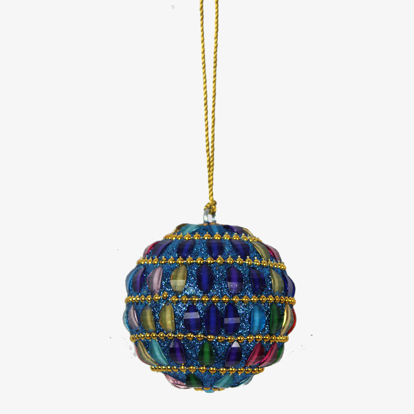 Set of 6 Blue Jewelled with Lac work for Christmas Decorative Balls