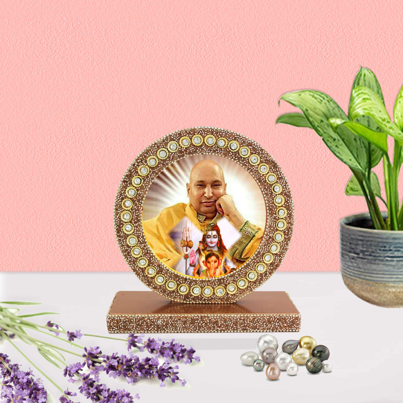 Handcrafted Photo Frame, comes with jewels/Beaded/Lac work at border looks beautiful when placed at home, office and mandir.