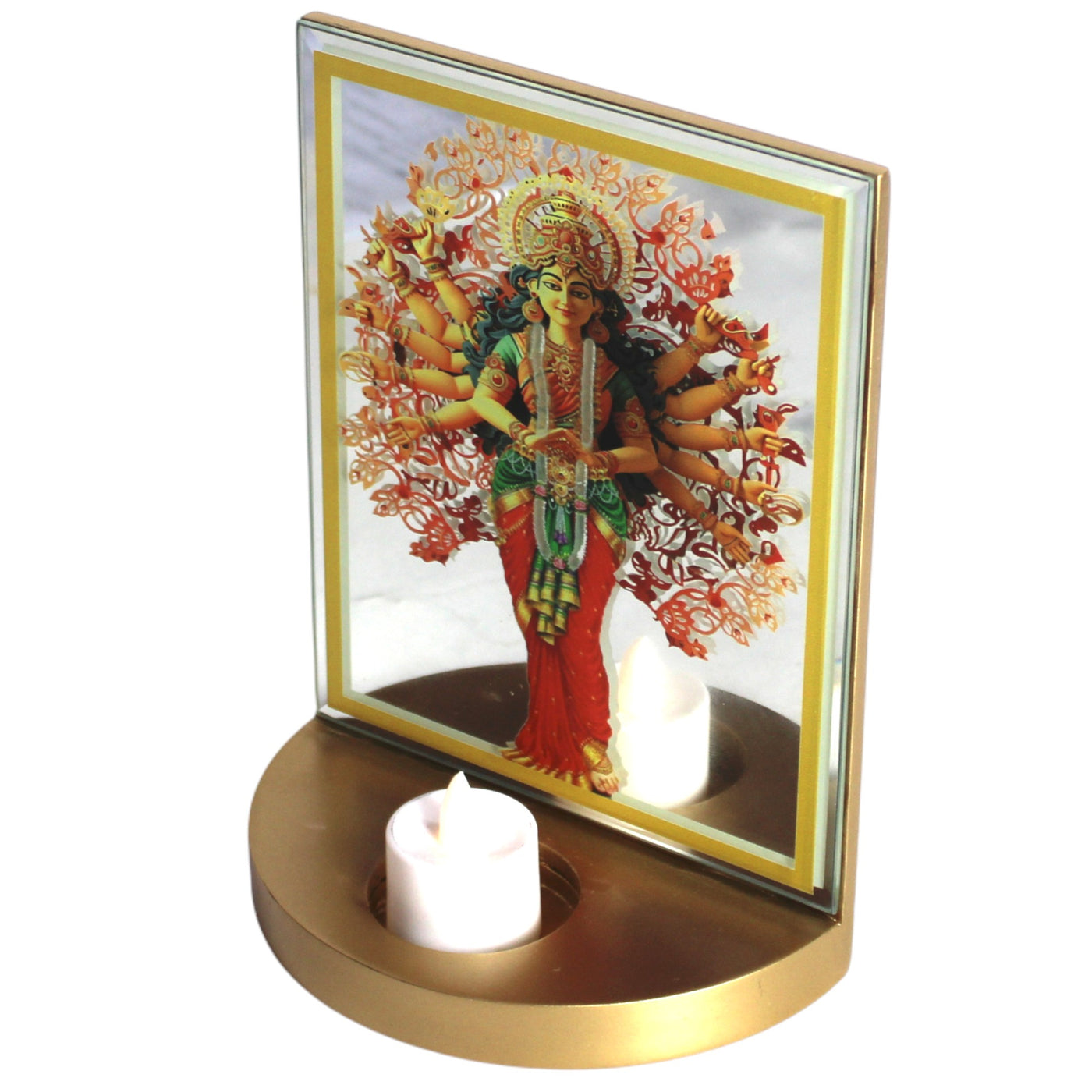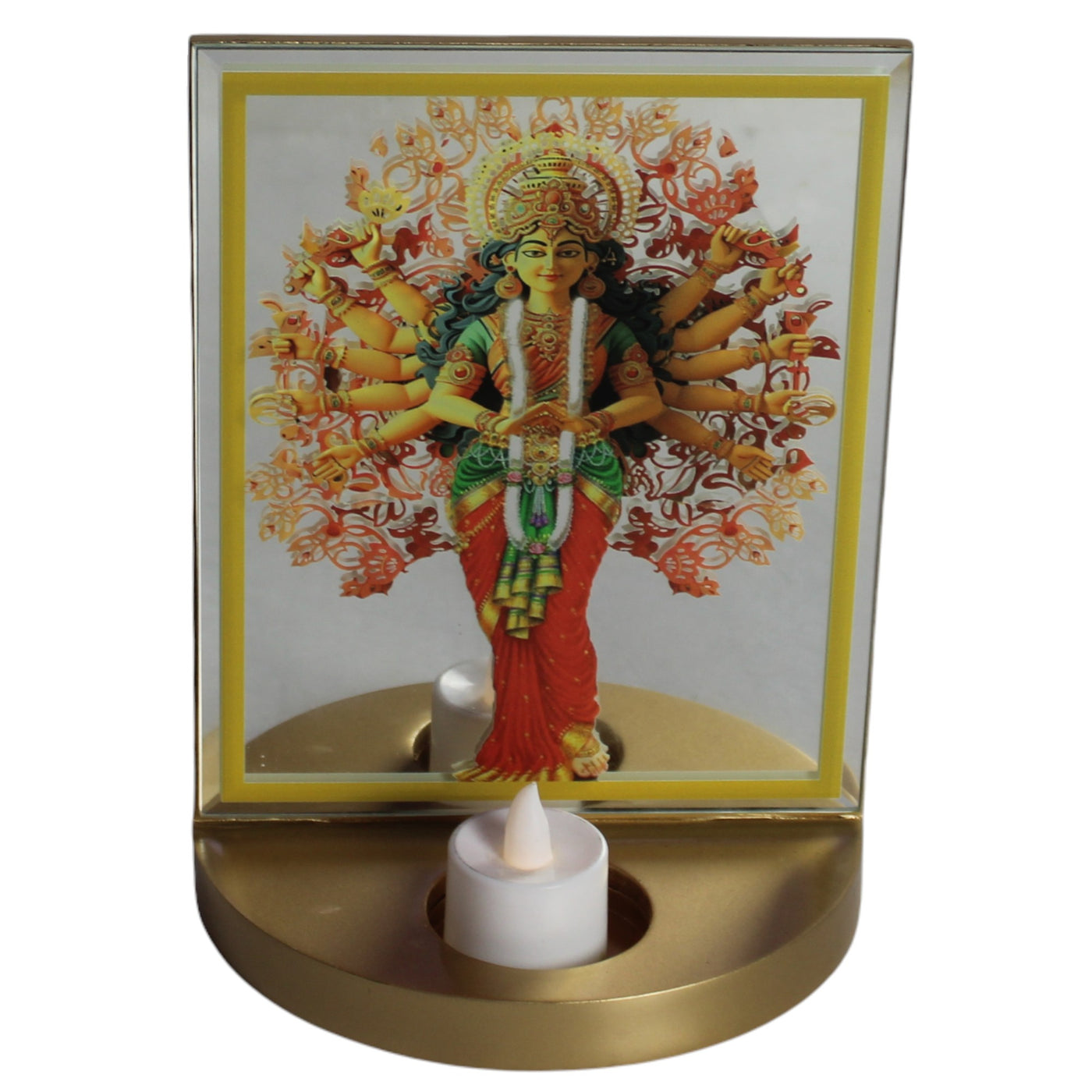 T-Light Included: Comes with an elegant T-light holder to illuminate the frame, creating a soft, warm glow around the photo of Mata. The T-light adds a divine and tranquil ambiance, elevating the festive spirit.