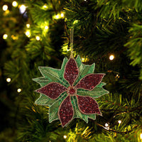 Set of 2 Multicolored Beaded Flower Shaped Christmas Ornaments