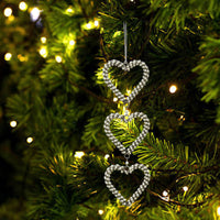 Set of 3 Beaded Triple Heart Ornament for Christmas Tree Decoration