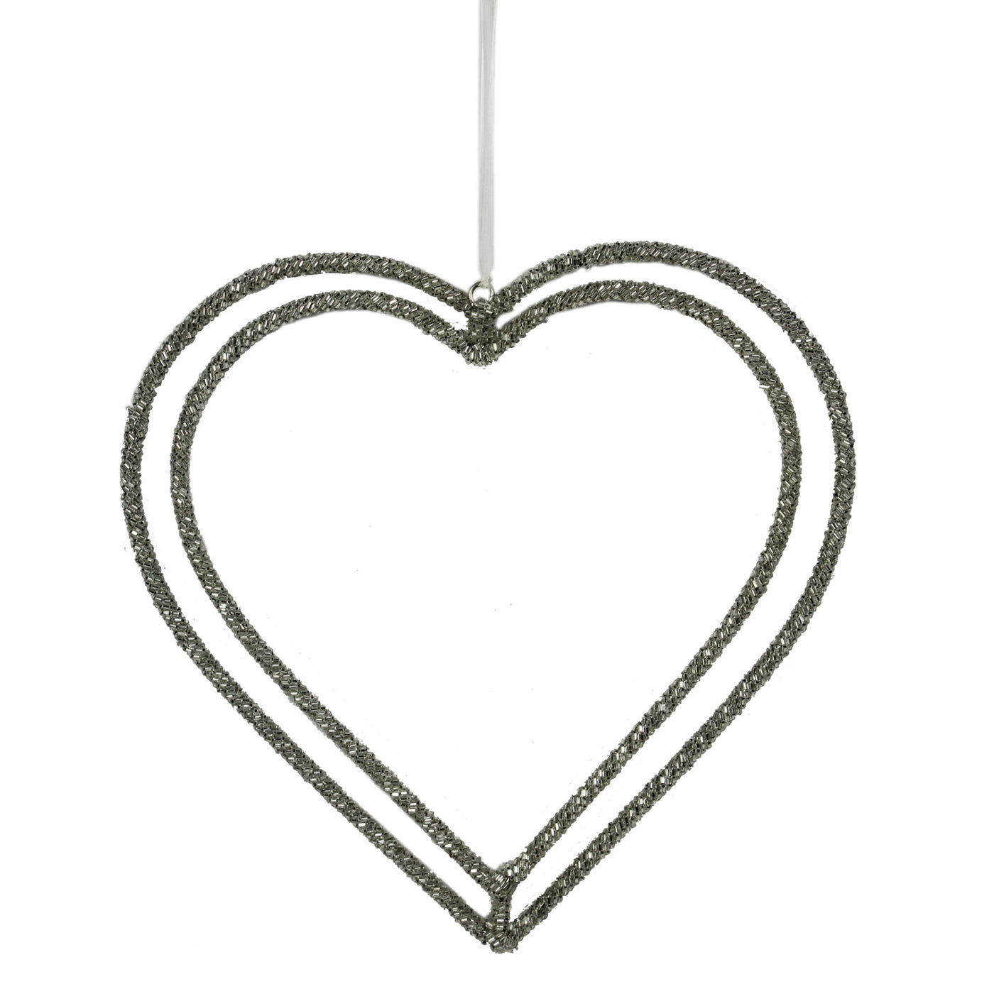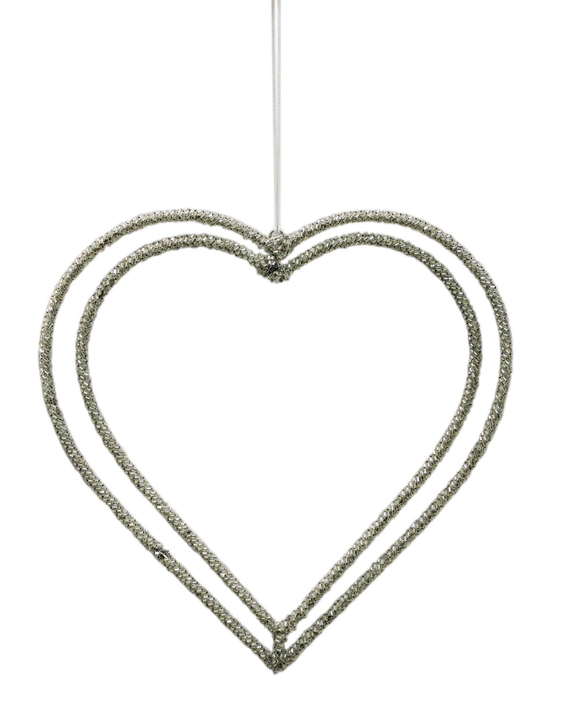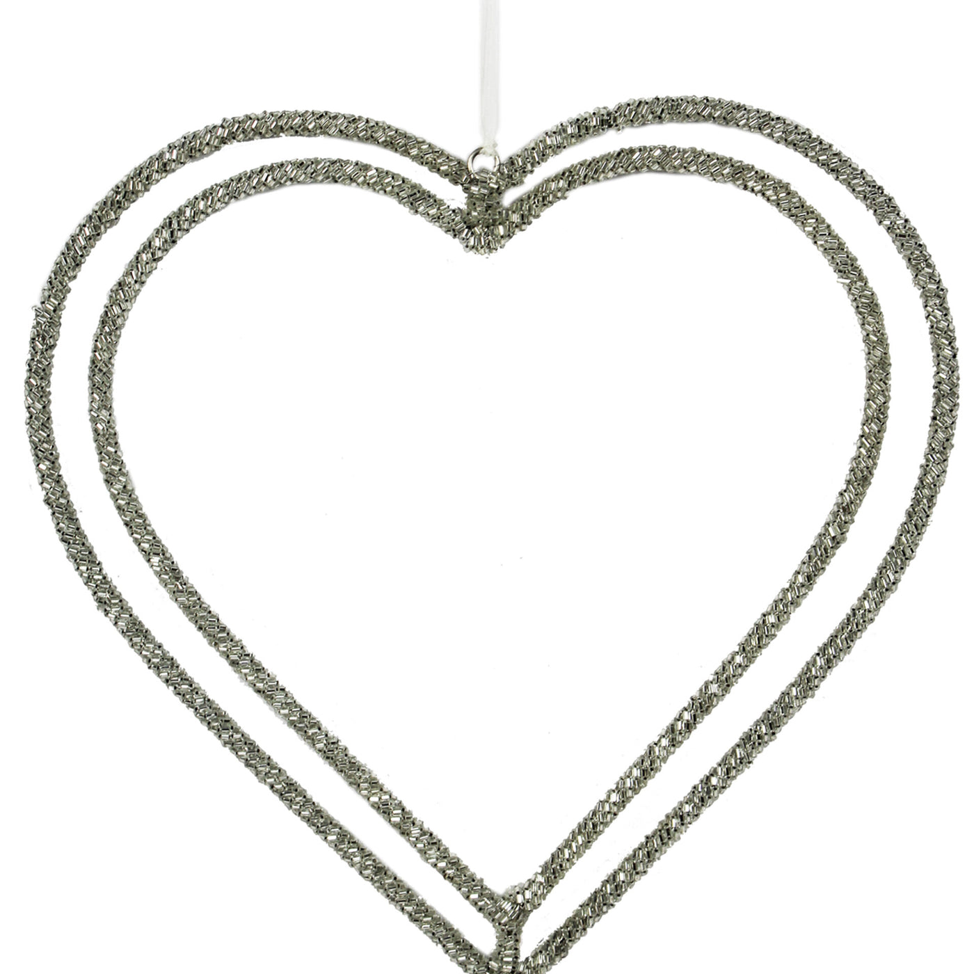 Silver Beaded Double Heart Shaped Christmas Hanging Ornament
